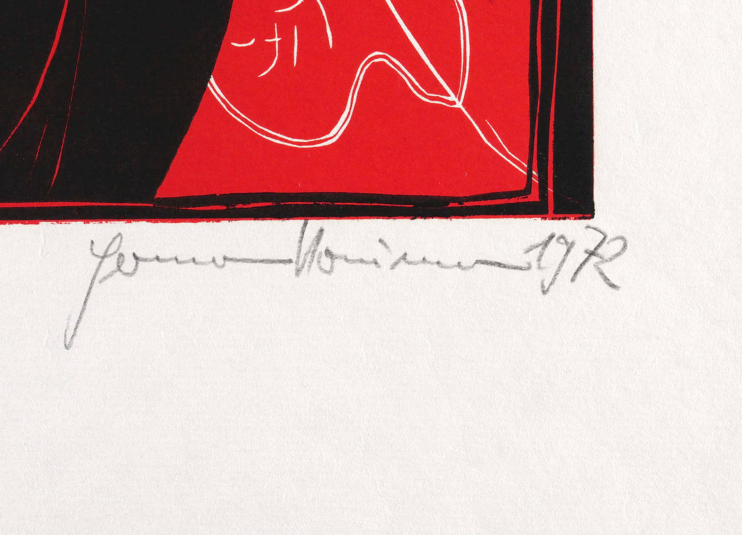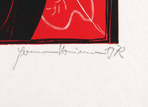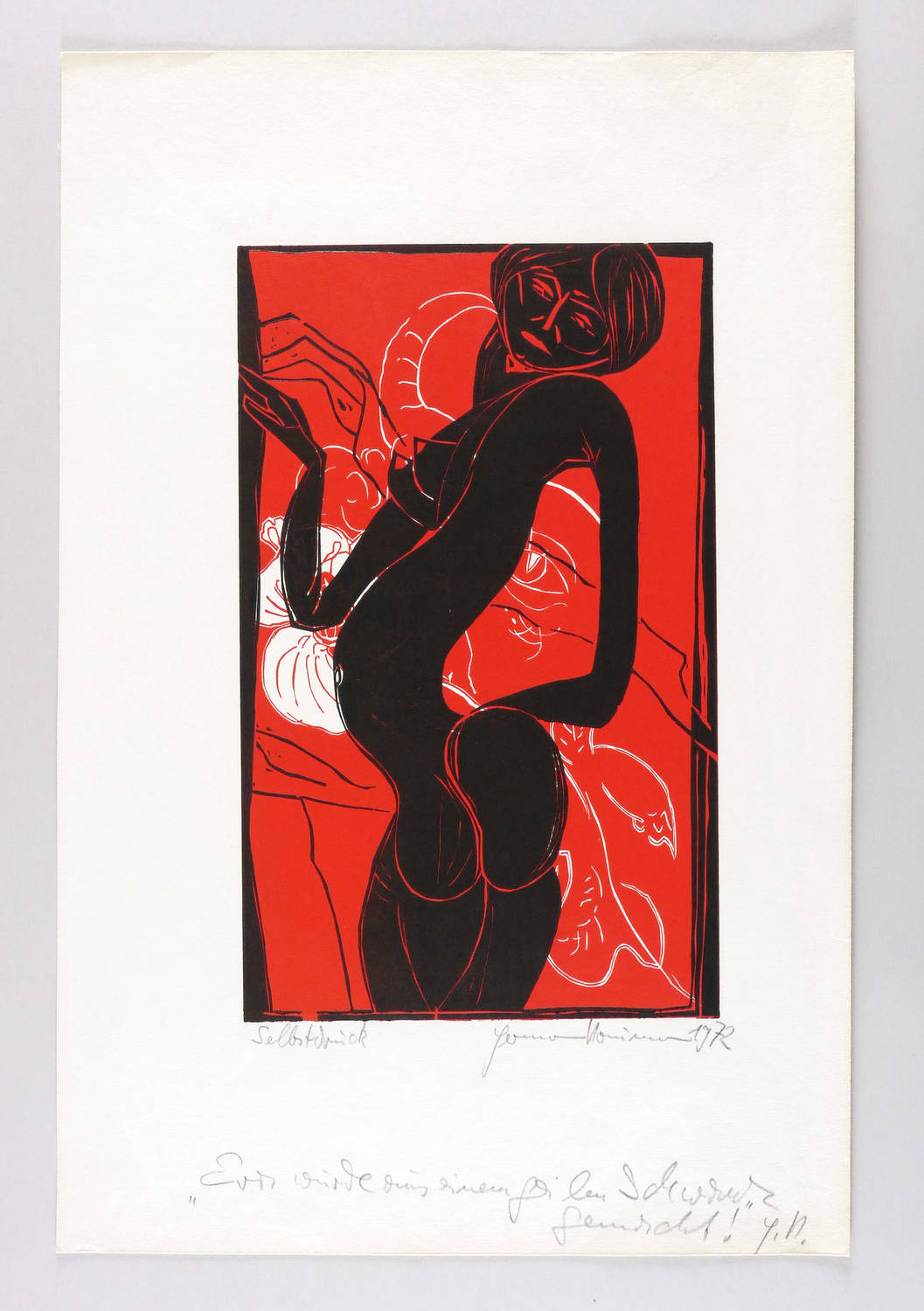 1972. Farbholzschnitt, in Rot & Schwarz, auf weichem gelblichem Velin. – Originale Künstlergrafik, von Hermann Naumann. – 40,1 x 24,8 cm (Darstellung / Druckstock), 63 x 41 cm (Blatt).