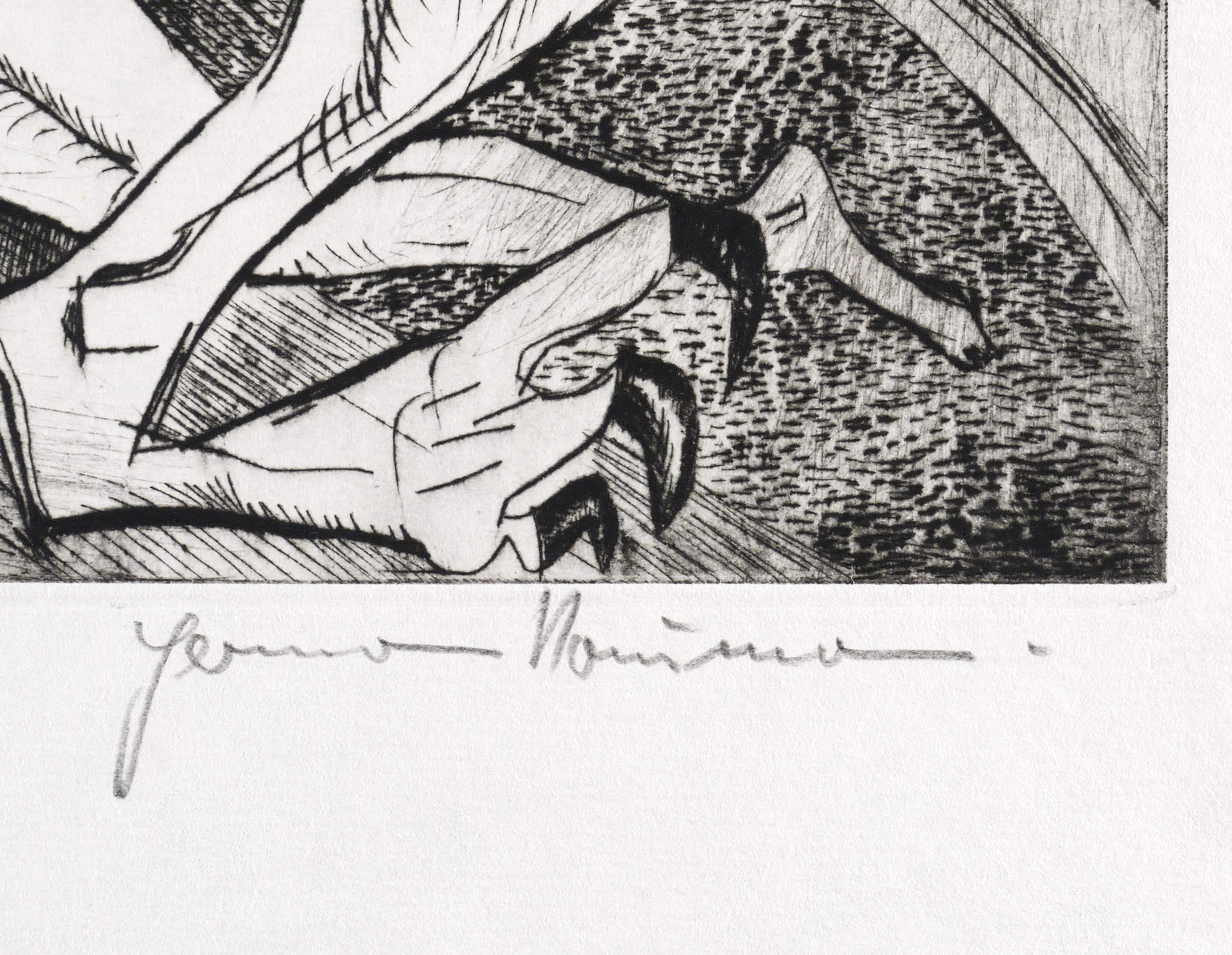 Rechts unten in Bleistift signiert: ″Hermann Naumann″. Links bezeichnet: ″Selbstdruck″. Im unteren Blattrand betitelt: ″zu Leiser Wolf 'Auf den Spuren von Leiser Wolf'″. In der Platte links unten Signatur und Jahr: ″H.N. 67″. – Handabzug des Künstlers. – Tadellos. Sehr guter Zustand.