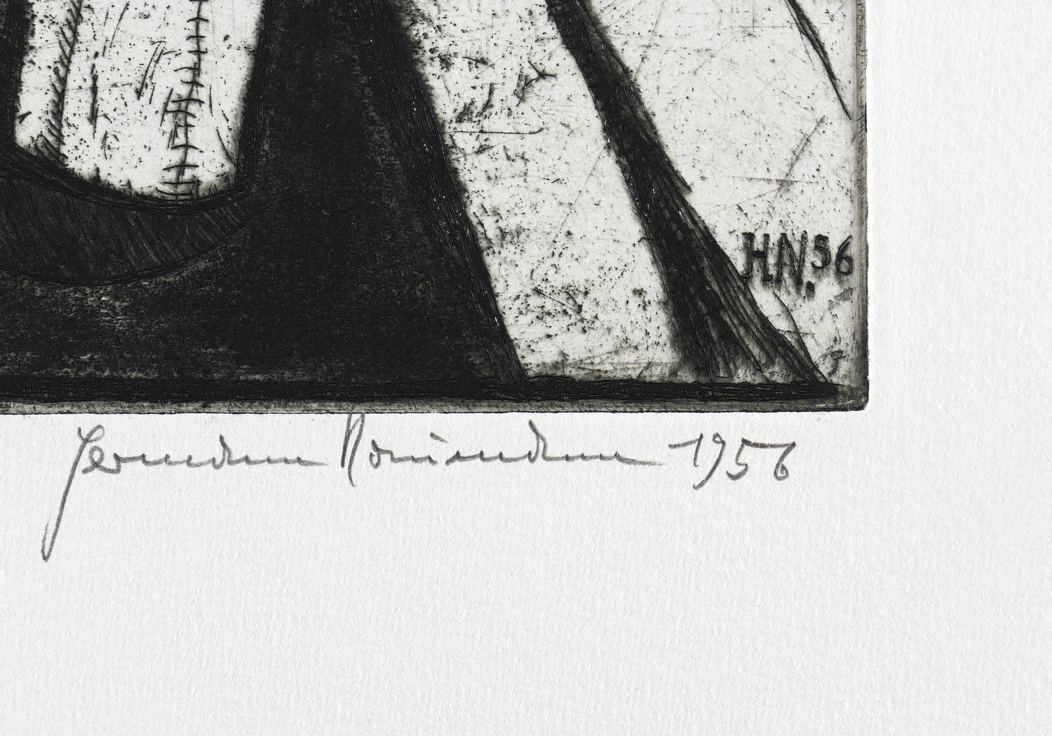 1956. Radierung / Strichätzung, Roulette & Punzenstich, in Schwarz, auf schwerem hellchamois Hahnemühle. – Originale Künstlergrafik, von Hermann Naumann. – Auflage Exemplar Nr. 35/100. – 39,6 x 29,8 cm (Darstellung / Platte), 50 x 40 cm (Blatt).
