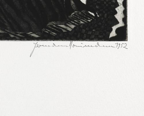 1952. Kupferstich / Linien- & Punzenstich, in Schwarz, auf hellchamois Hahnemühle. – Originale Künstlergrafik, von Hermann Naumann. – Auflage Exemplar Nr. 35/100. – 24,6 x 19,8 cm (Darstellung / Platte), 50 x 39 cm (Blatt).