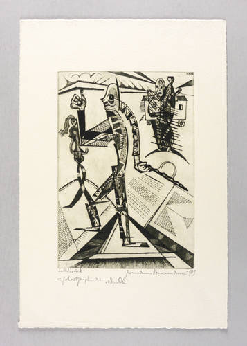 Rechts unten in Bleistift signiert und datiert: ″Hermann Naumann 1983″. Links bezeichnet: ″Selbstdruck″. Darunter: ″zu Gerhart Hauptmann: 'Wanda'″. In der Platte rechts oben Signatur und Jahr: ″H.N. 1983″. – Provenienz: Sammlung Dr. Ingrid und Prof. Dr. Albrecht Scholz, Dresden. – Sehr guter Zustand.