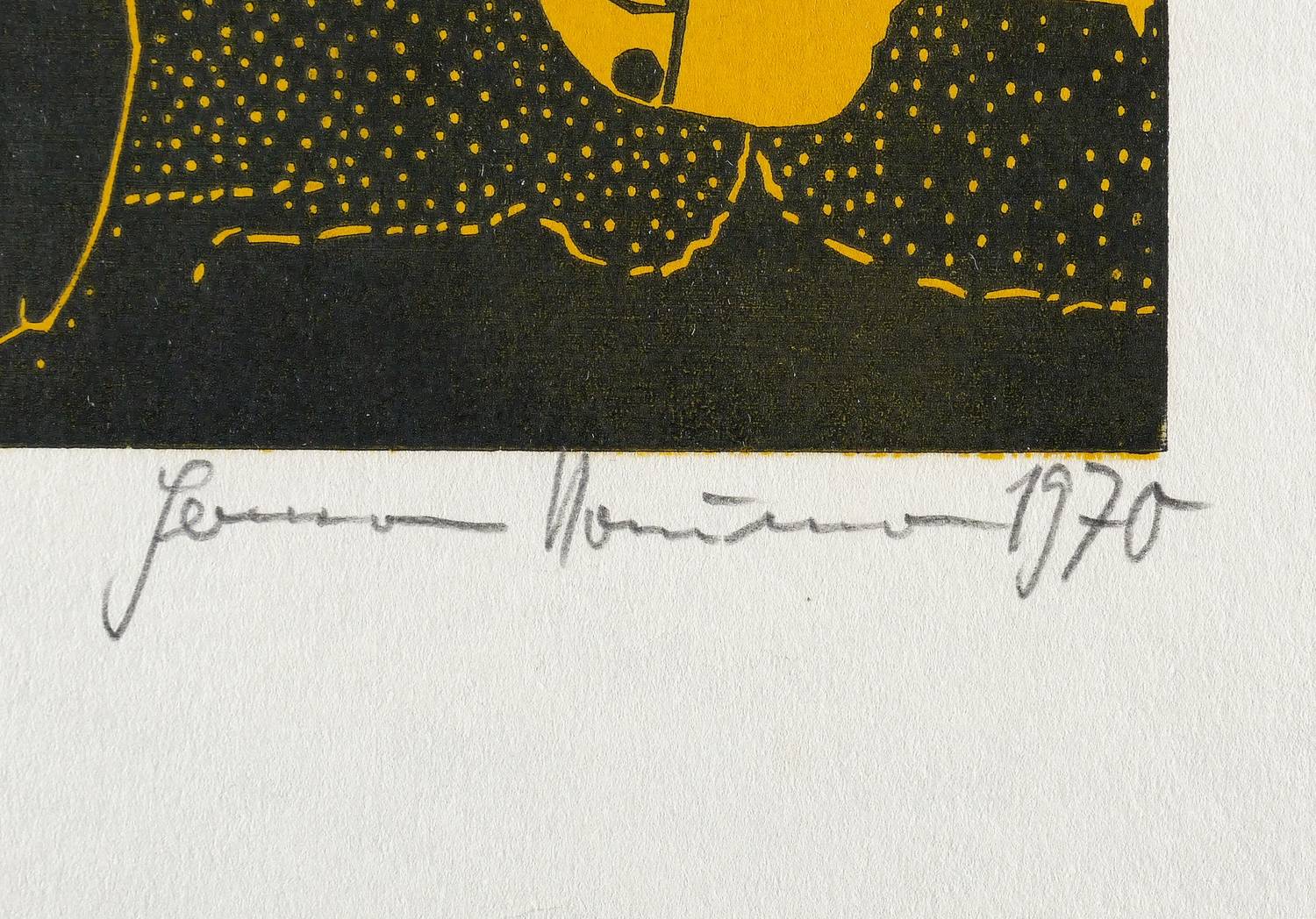 1970. Farbholzschnitt, in 2 Farben, auf grobfasrigem Büttenpapier. – Originale Künstlergrafik, von Hermann Naumann. – Auflage Exemplar Nr. 40/40. – 30,1 x 17,0 cm (Darstellung / Druckstock), 42 x 30 cm (Blatt).