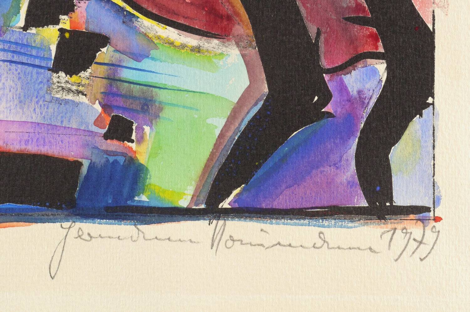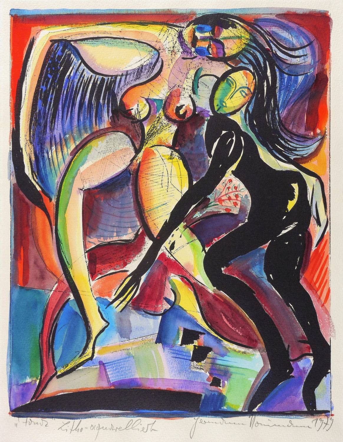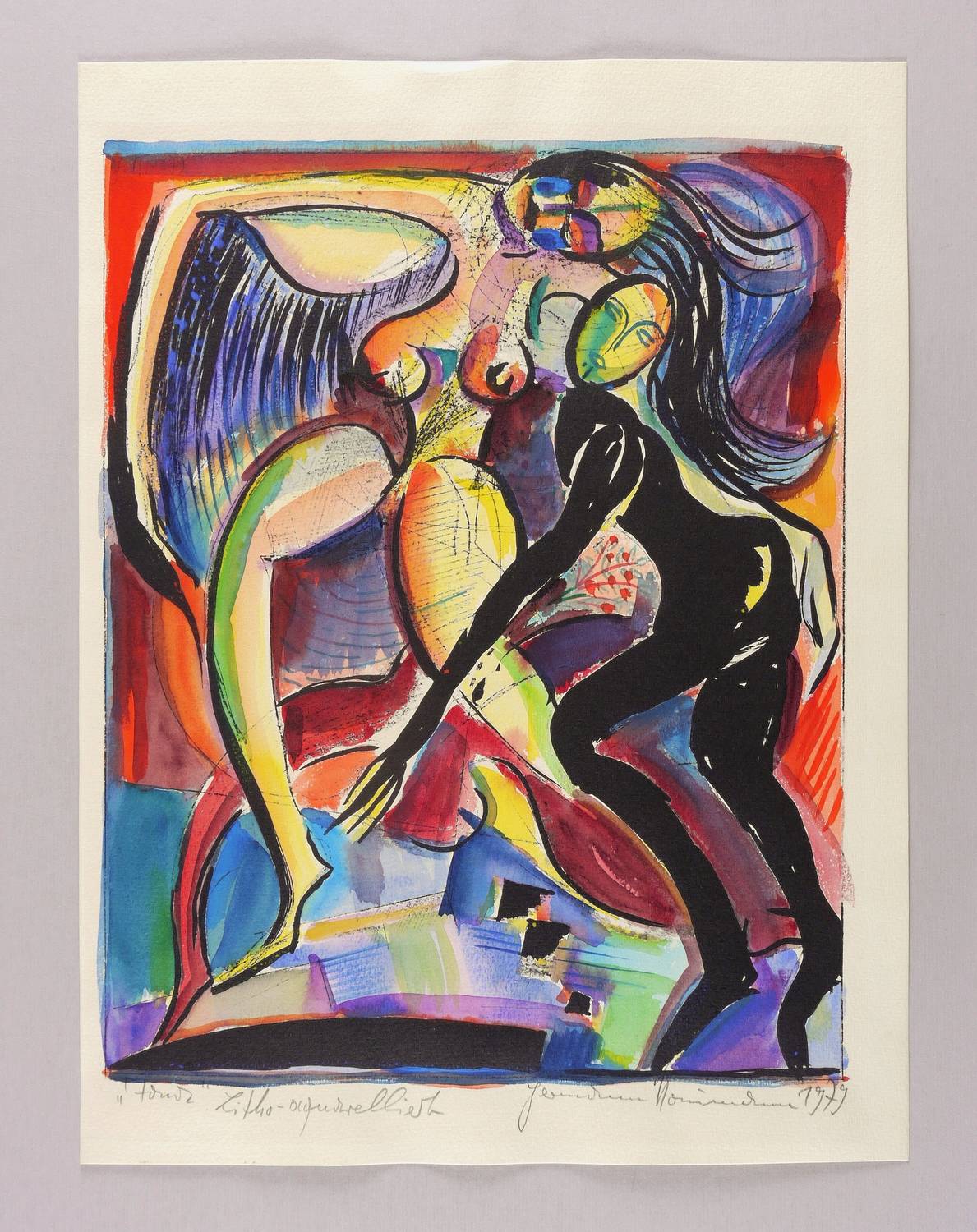 Rechts unten in Bleistift signiert und datiert: ″Hermann Naumann 1979″. Links bezeichnet: ″Tanz Litho aquarelliert″. – Sehr guter Zustand.