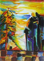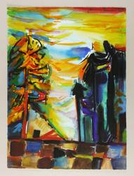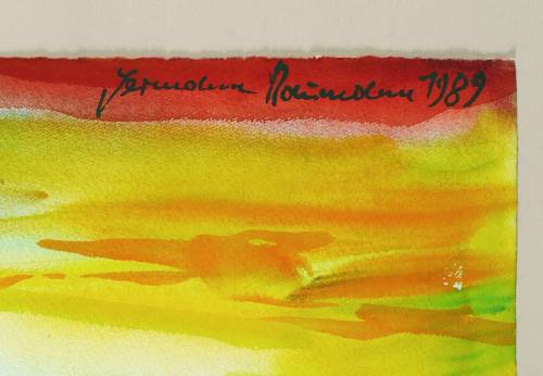1989. Aquarell, auf hellchamois Hahnemühle-Velinkarton. – Originale Künstlergrafik, von Hermann Naumann. – Unikat. – 75,0 x 55,5 cm (Darstellung / Blatt).