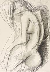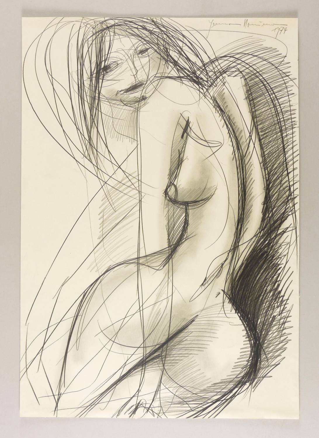 1974. Zeichnung / Bleistift, partiell gewischt, auf glattem chamois Velinkarton. – Originale Künstlergrafik, von Hermann Naumann. – Unikat. – 73,7 x 51,3 cm (Darstellung / Blatt).