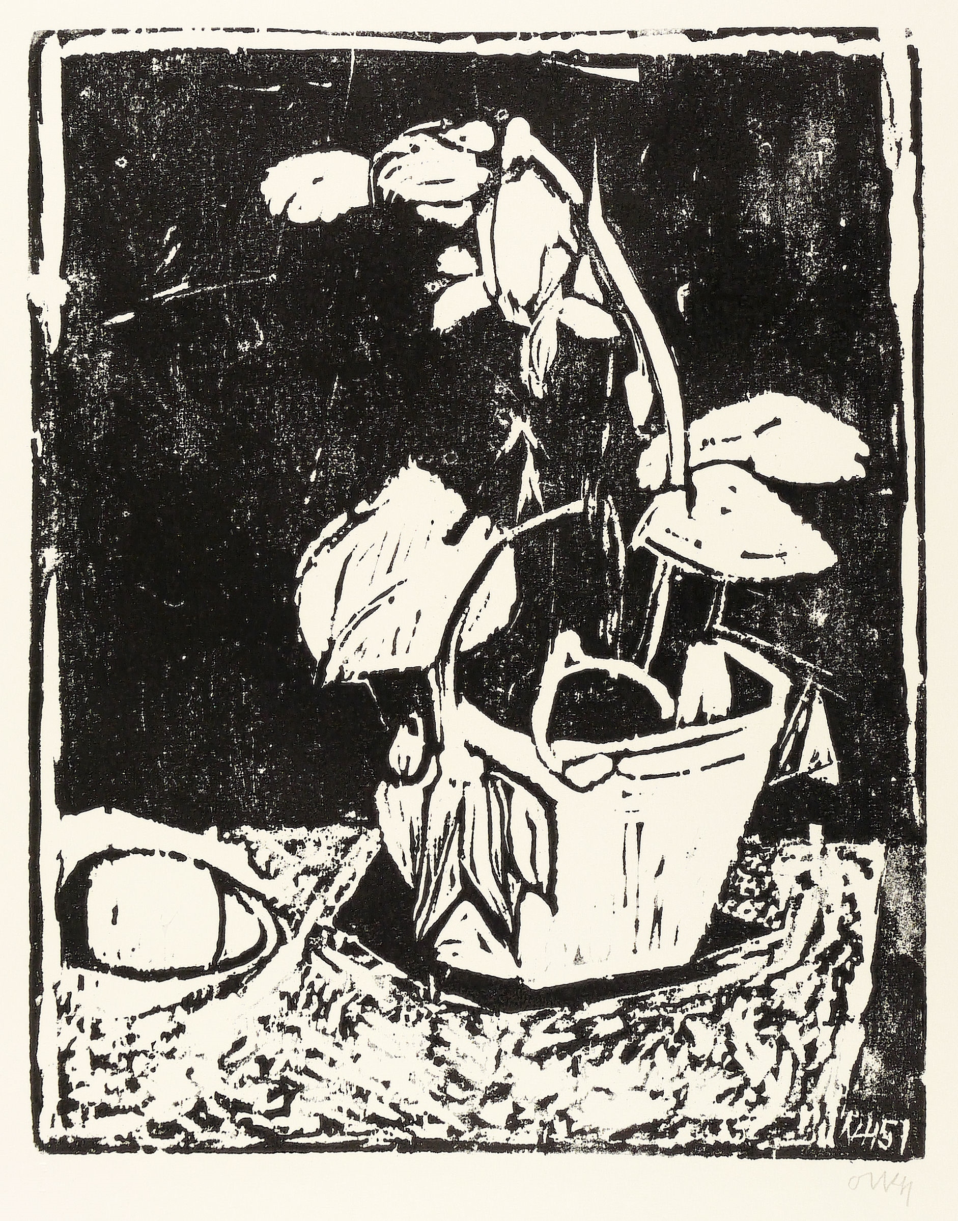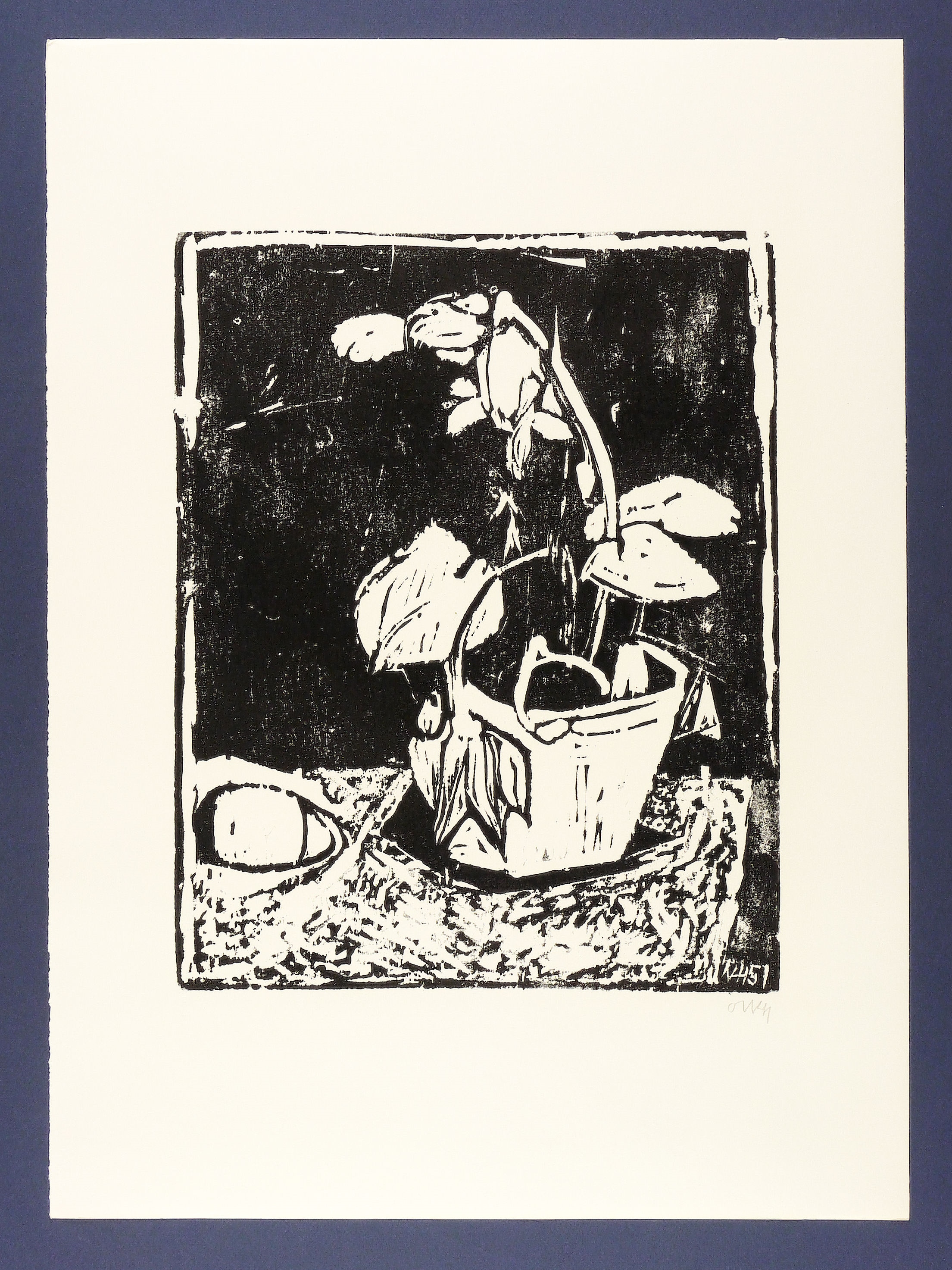 1957. Holzschnitt, in Schwarz, auf hellchamois Weißenborn. – Originale Künstlergrafik, von Otto Niemeyer-Holstein. – Auflage Exemplar Nr. 39/100. – 40,4 x 32,2 cm (Darstellung / Platte), 63 x 46 cm (Blatt).