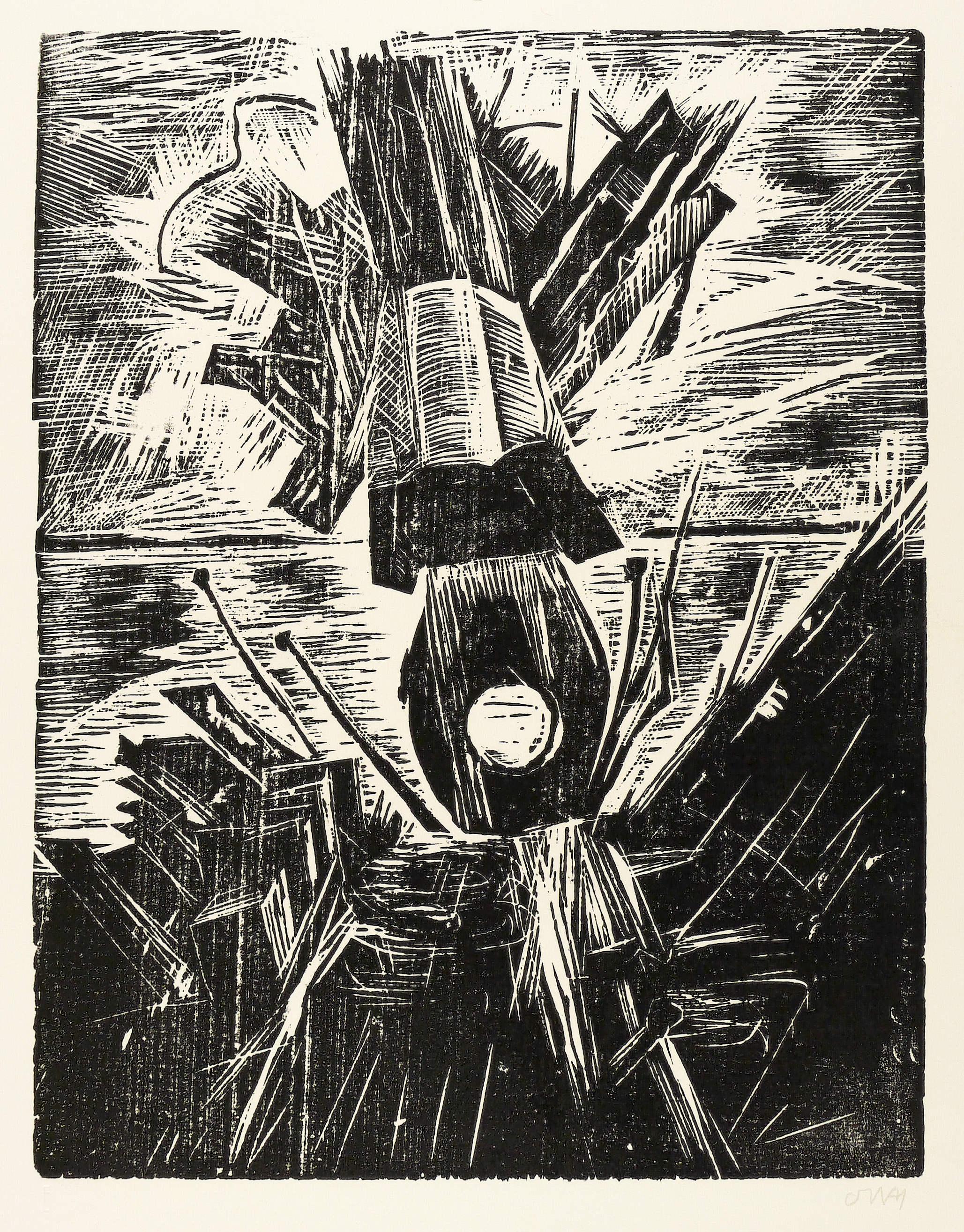 1927/1981. Holzschnitt, in Schwarz, auf Weißenborn-Bütten. – Originale Künstlergrafik, von Otto Niemeyer-Holstein. – 45,9 x 35,6 cm (Darstellung / Platte), 63 x 46 cm (Blatt).