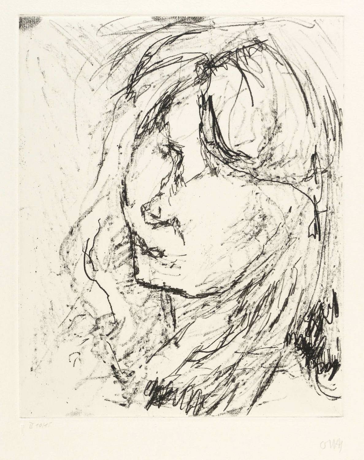 1981. Radierung / Vernis mou, in Schwarz, auf kräftigem weißem Büttenpapier. – Originale Künstlergrafik, von Otto Niemeyer-Holstein. – Auflage Exemplar Nr. 10/15. – 30,5 x 24,6 cm (Darstellung / Platte), 56,5 x 39 cm (Blatt).