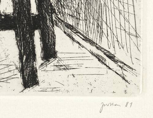 1981. Radierung / Strichätzung, in Schwarz, auf Weißenborn-Bütten. – Originale Künstlergrafik, von Christine Perthen. – Auflage Exemplar Nr. 1/200. – 23,5 x 26,3 cm (Darstellung / Platte), 29 x 29 cm (Blatt).