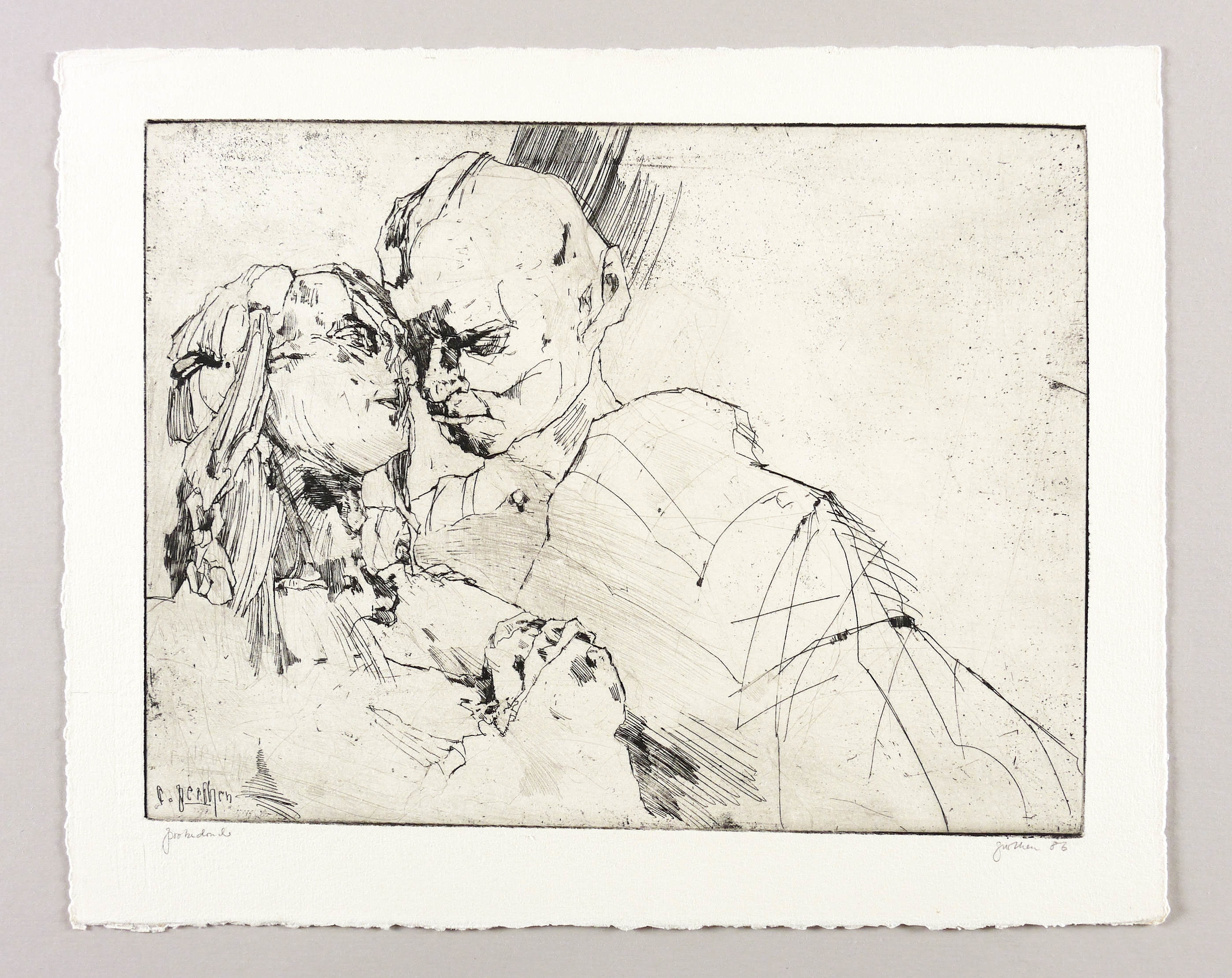 Rechts unten in Bleistift signiert und datiert: ″Perthen 86″. Links Auflagenbezeichnung: ″Probedruck″. In der Platte links unten Signatur: ″C. Perthen″. – Ohne Mängel. Sehr guter Zustand.
