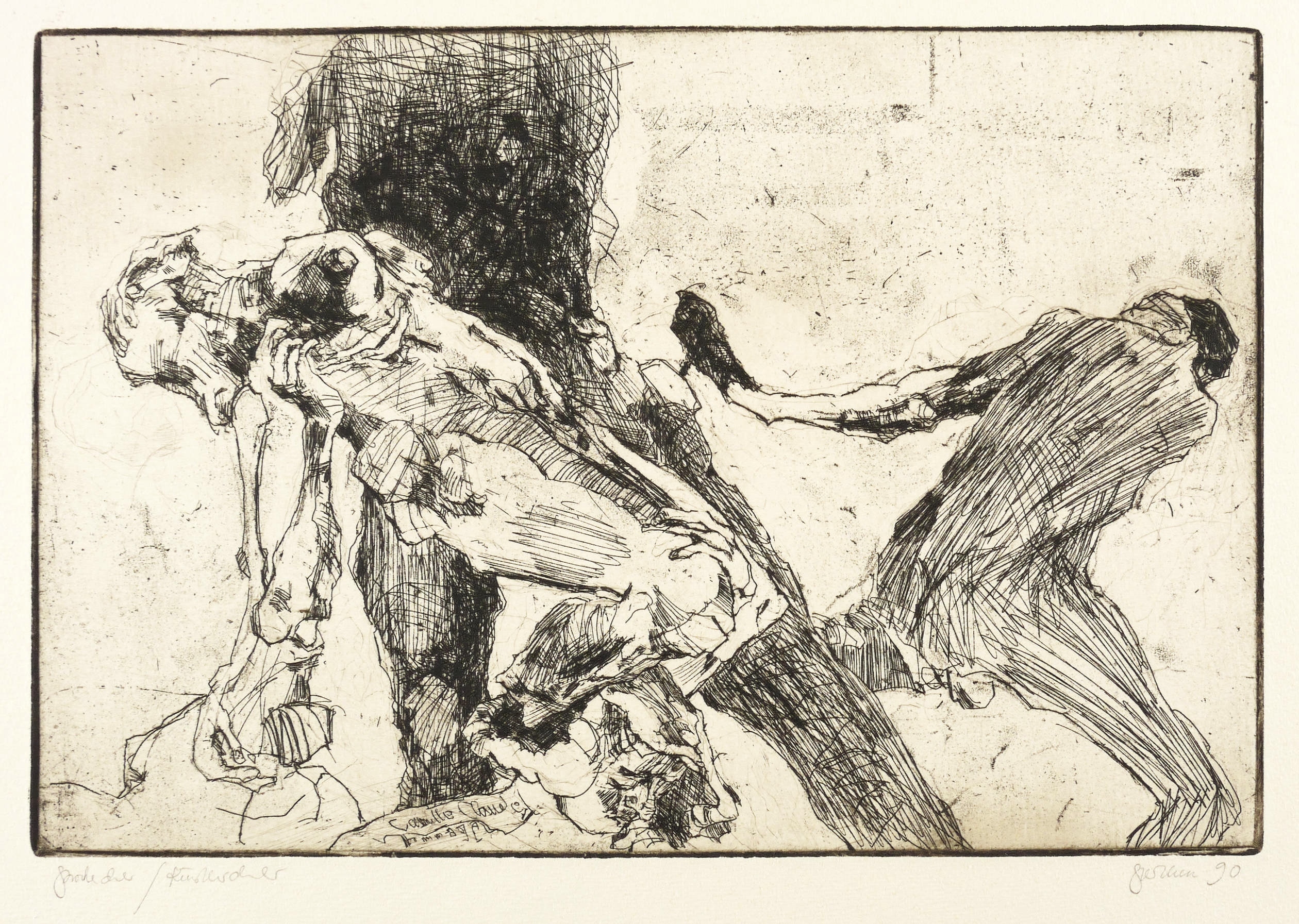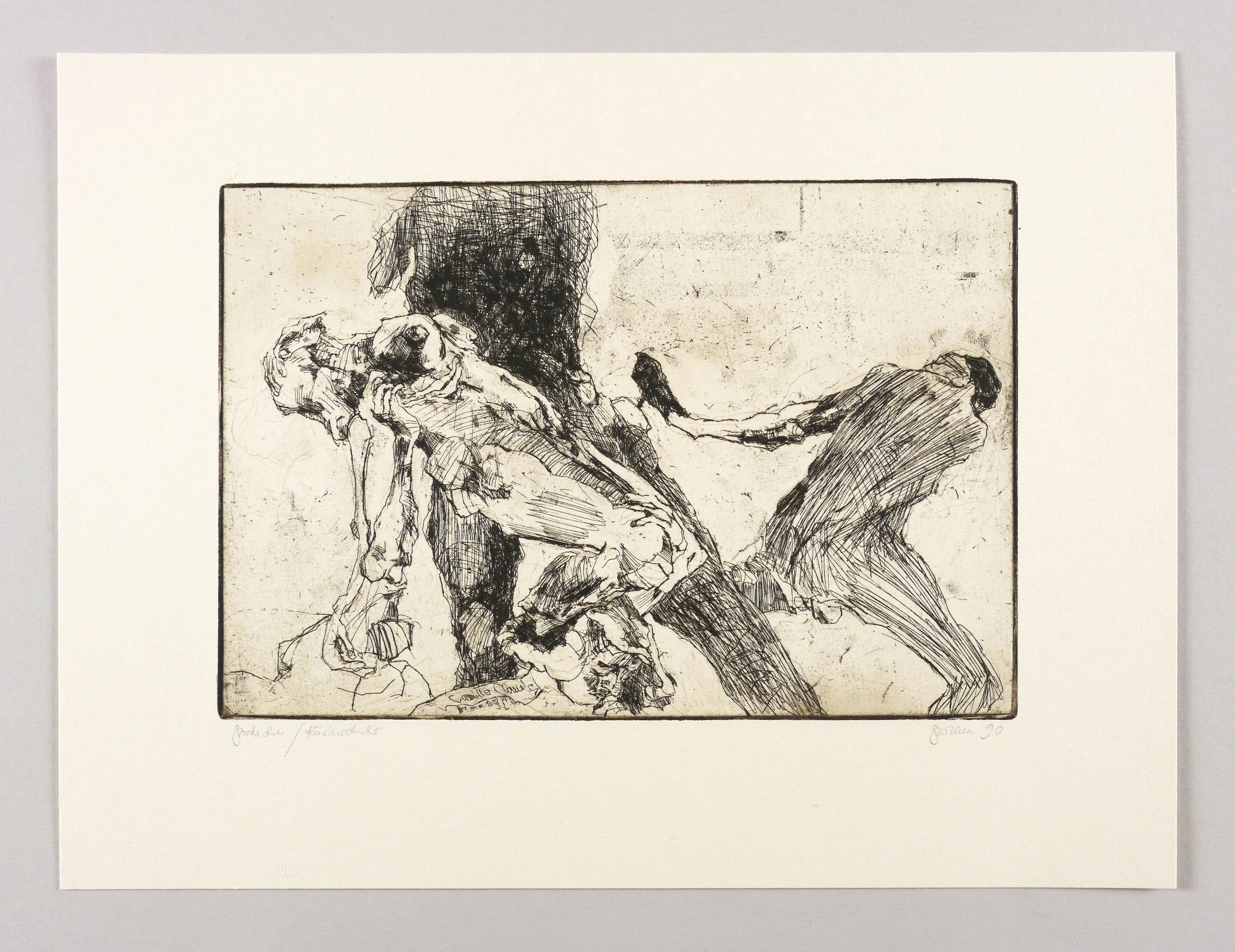 Rechts unten in Bleistift signiert und datiert: ″Perthen 90″. Links Auflagenbezeichnung: ″Probedruck / Künstlerdruck″. In der Platte links unten Inschrift: ″Camille Claudel Hommage″. – Ohne Mangel. Sehr gut erhalten.