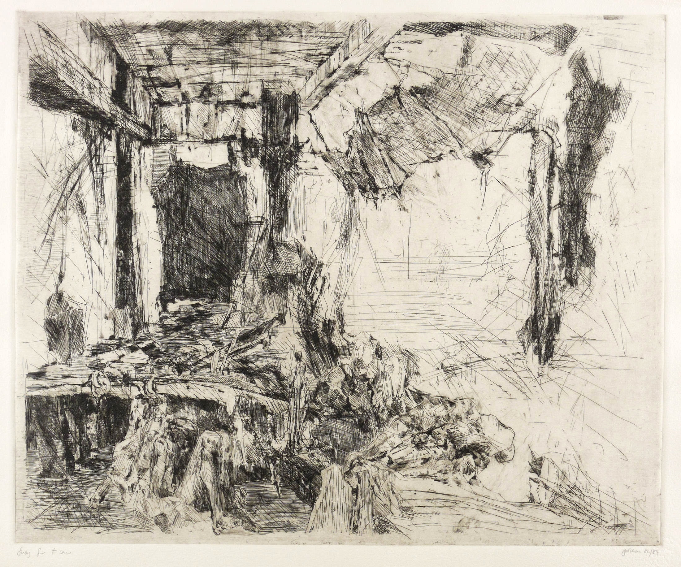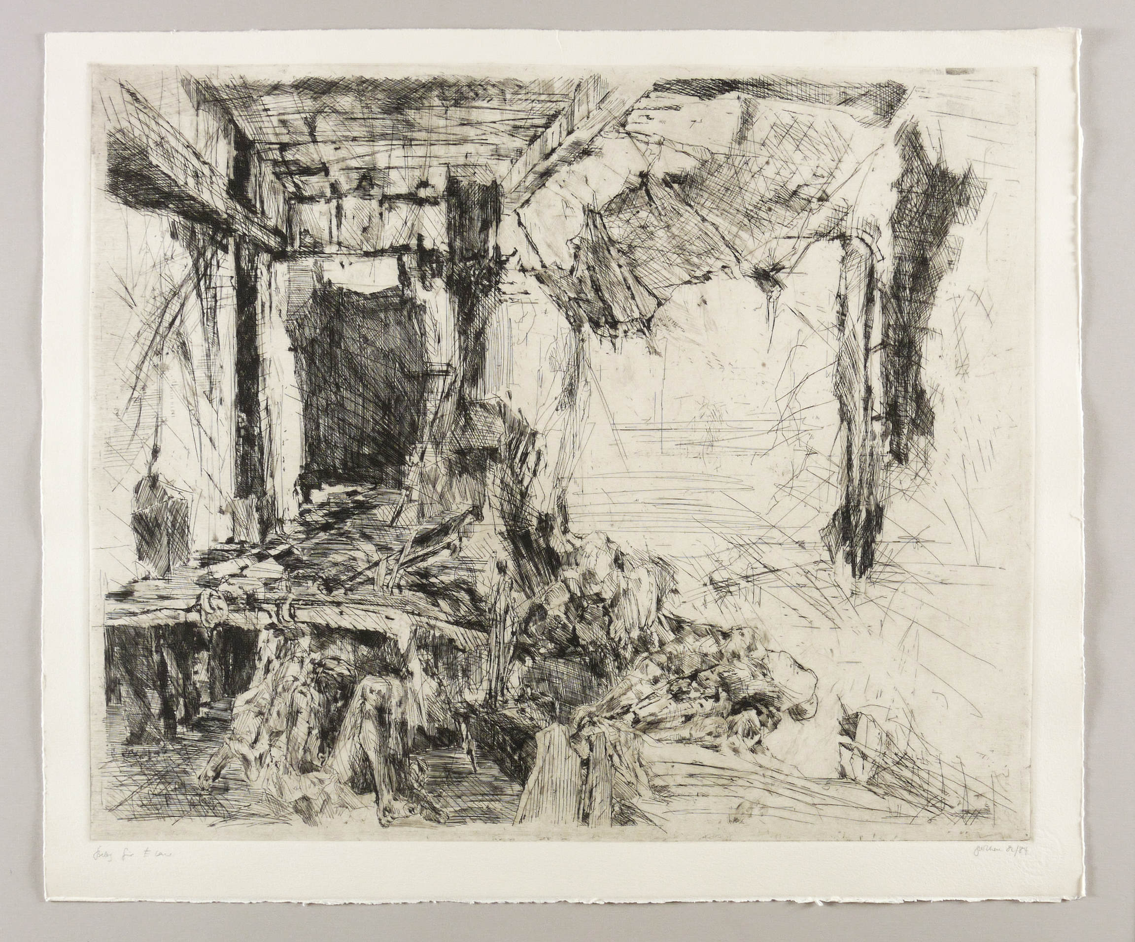 Rechts unten in Bleistift signiert und datiert: ″Perthen 82/84″. Links Auflagenbezeichnung mit Widmung für den Drucker Ernst Lau. Wasserzeichen. – Blatt Nr. 3 aus der Radier-Folge ″Eine verratene Welt″ von Christine Perthen. – Ausstellung: 1987/1988 X. Kunstausstellung der DDR, Dresden. – Blattecke rechts oben etwas bestoßen und knickspurig. Sonst guter Zustand.