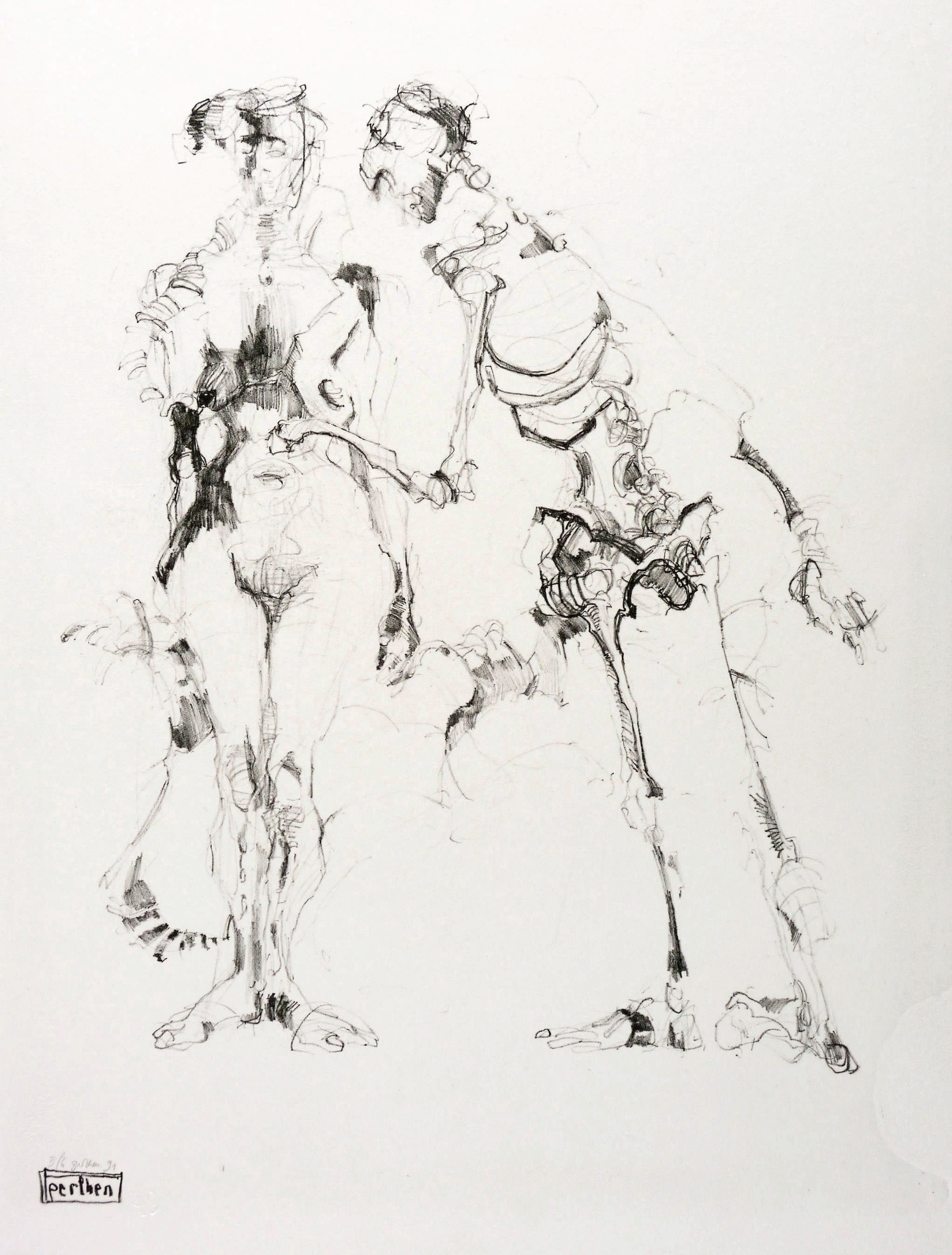Rechts unten in Bleistift signiert und datiert: ″perthen 91″. Links daneben Auflagenbezeichnung: ″5/6″. Dazu Trockenstempel der Druckpresse. Im Stein links unten weitere Signatur: ″perthen″. – Ohne Mangel. Sehr guter Zustand.