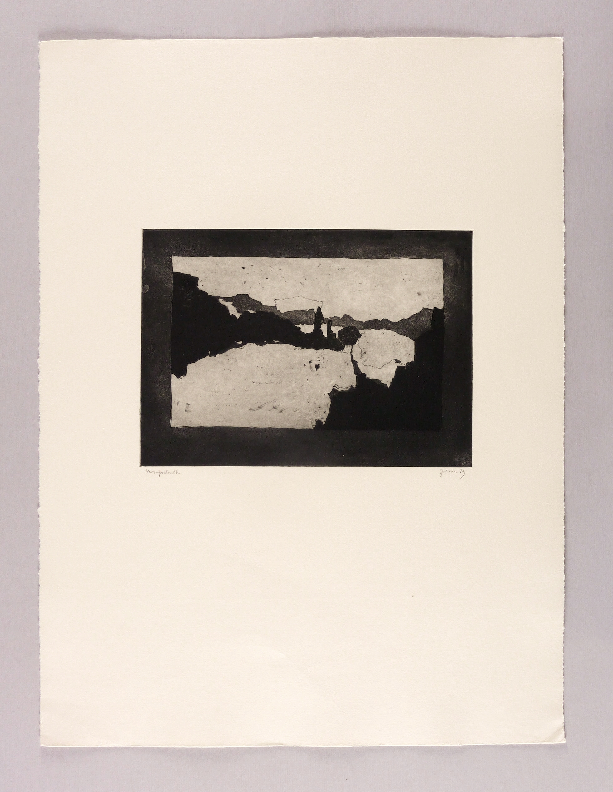 1979. Radierung / Aquatinta & Strichätzung, in Schwarz, auf schwerem chamois Hahnemühle. – Originale Künstlergrafik, von Christine Perthen. – Vorzugsdruck. – 17,8 x 24,8 cm (Darstellung / Platte), 54 x 40 cm (Blatt).