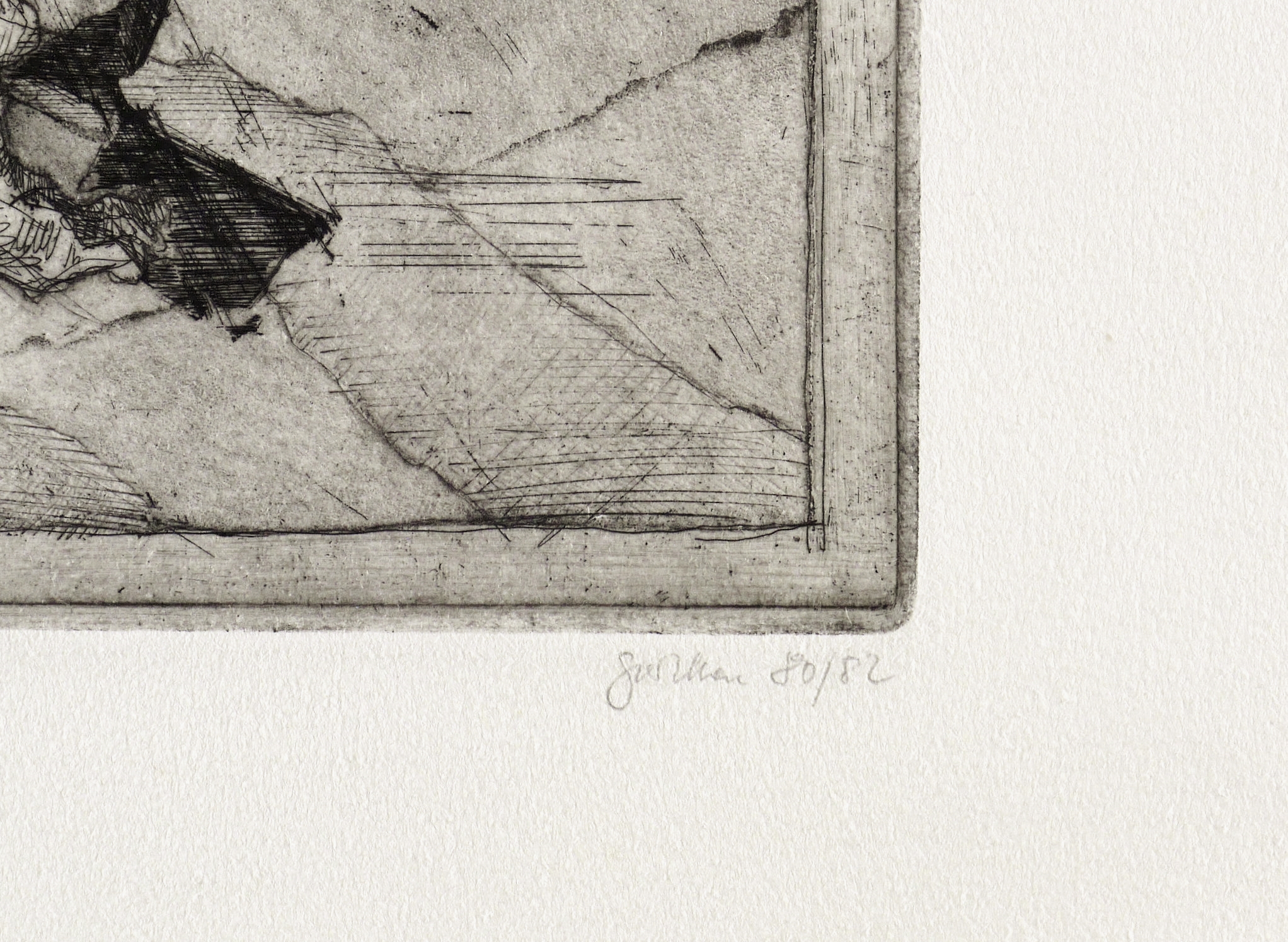 1980/1982. Radierung / Aquatinta, Strichätzung & Kaltnadel, in Schwarz, auf schwerem hellchamois Hahnemühle. – Originale Künstlergrafik, von Christine Perthen. – Auflage Exemplar Nr. 15/15. – 32,7 x 44,3 cm (Darstellung / Platte), 40 x 54 cm (Blatt).
