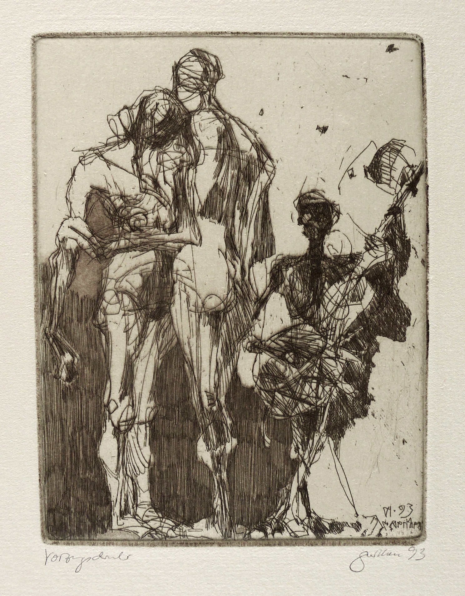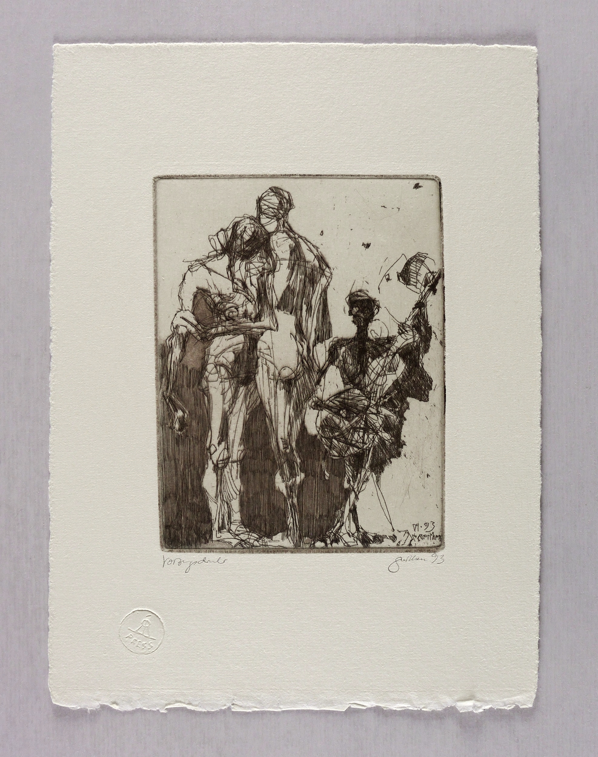 1993. Radierung / Strichätzung & Aquatinta, in Schwarzbraun, auf hellgrau getöntem Velinkarton. – Originale Künstlergrafik, von Christine Perthen. – Vorzugsdruck. – 15,5 x 12,0 cm (Darstellung / Platte), 28 x 20 cm (Blatt).