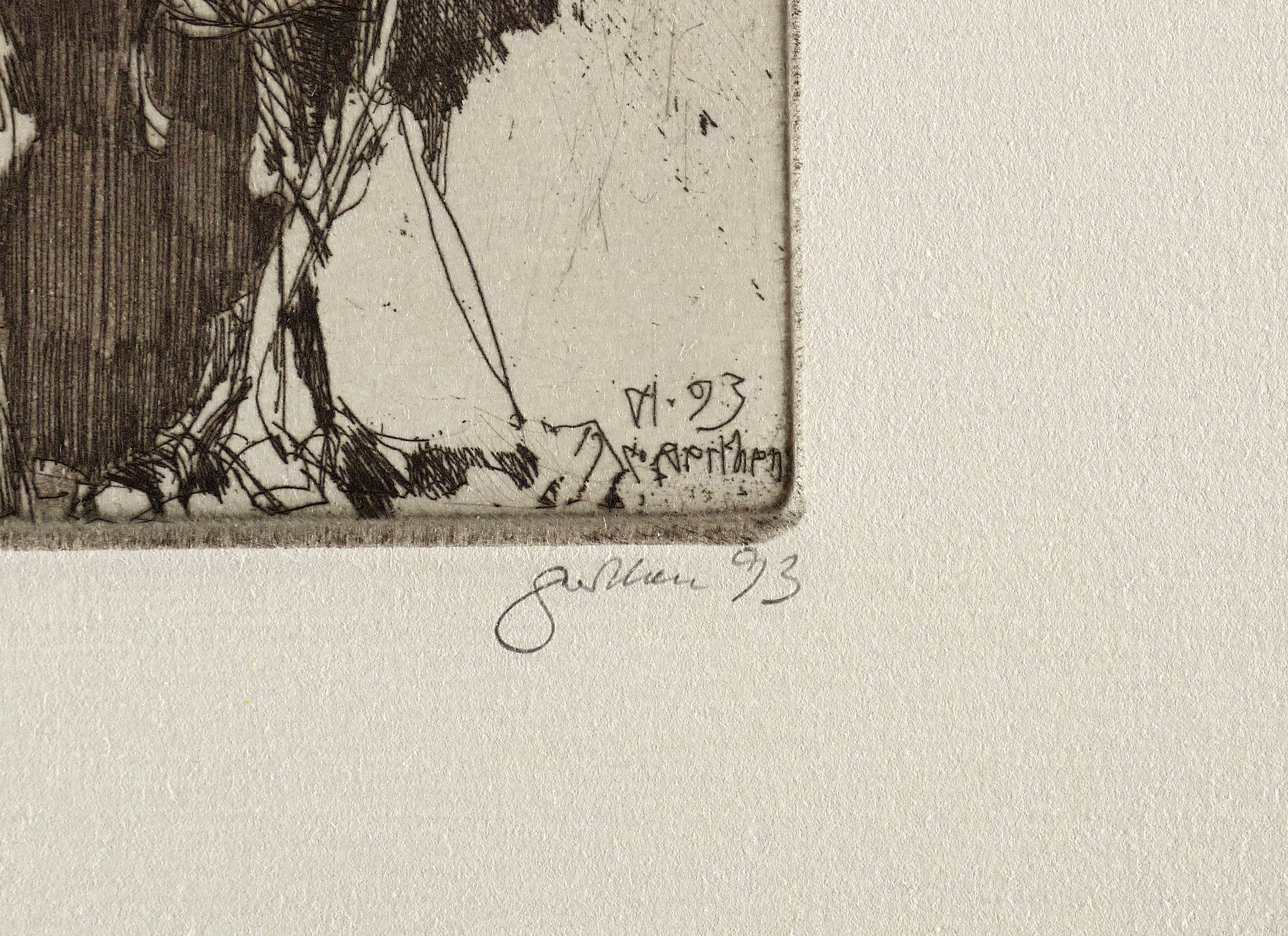 Rechts unten in Bleistift signiert und datiert: ″perthen 93″. Links Auflagenbezeichnung: ″Vorzugsdruck″. In der Platte rechts unten nochmals Signatur und Jahr: ″c. perthen X. 93″. Trockenstempel des Druckers bzw. der Grafikpresse. – Sehr guter Zustand.