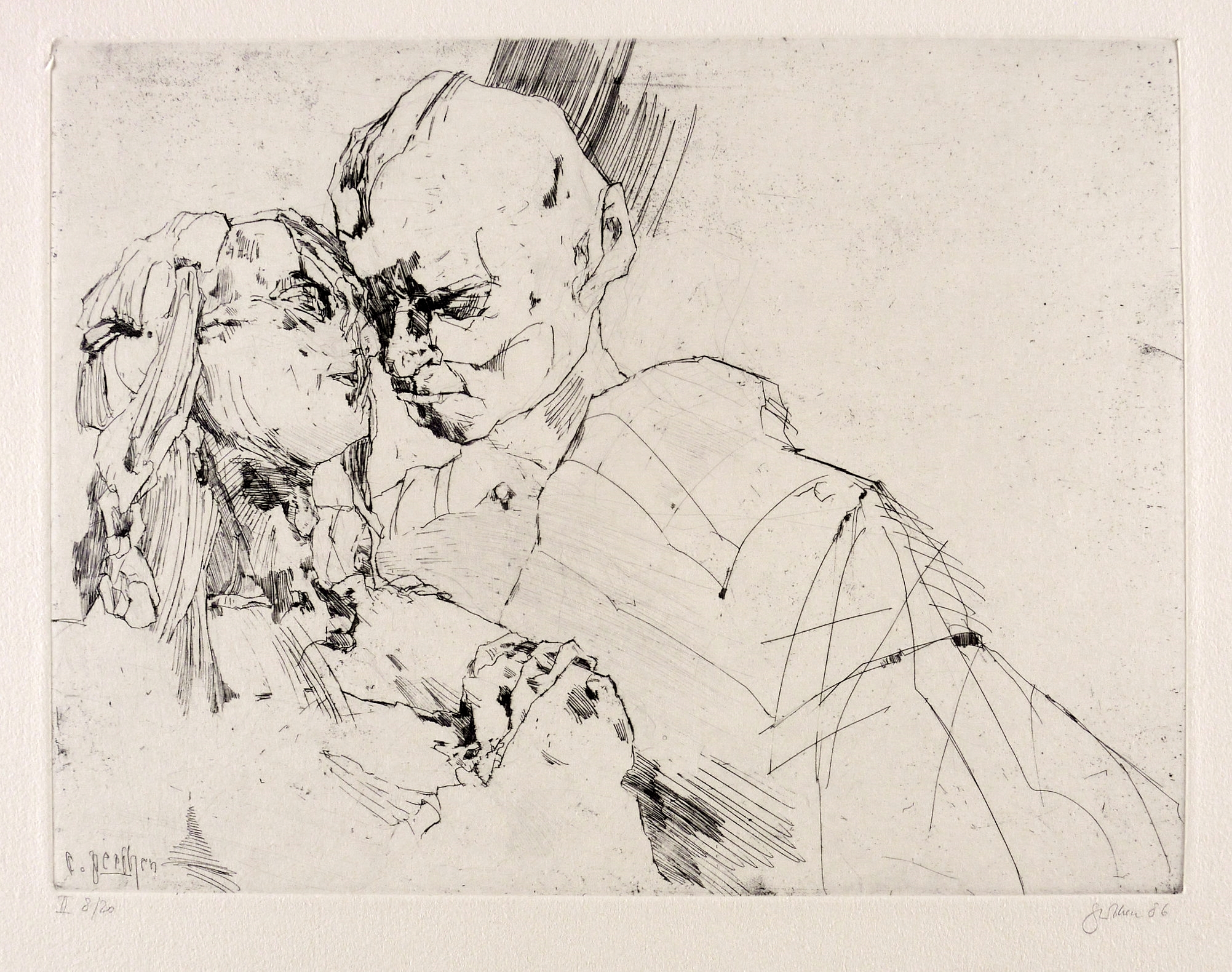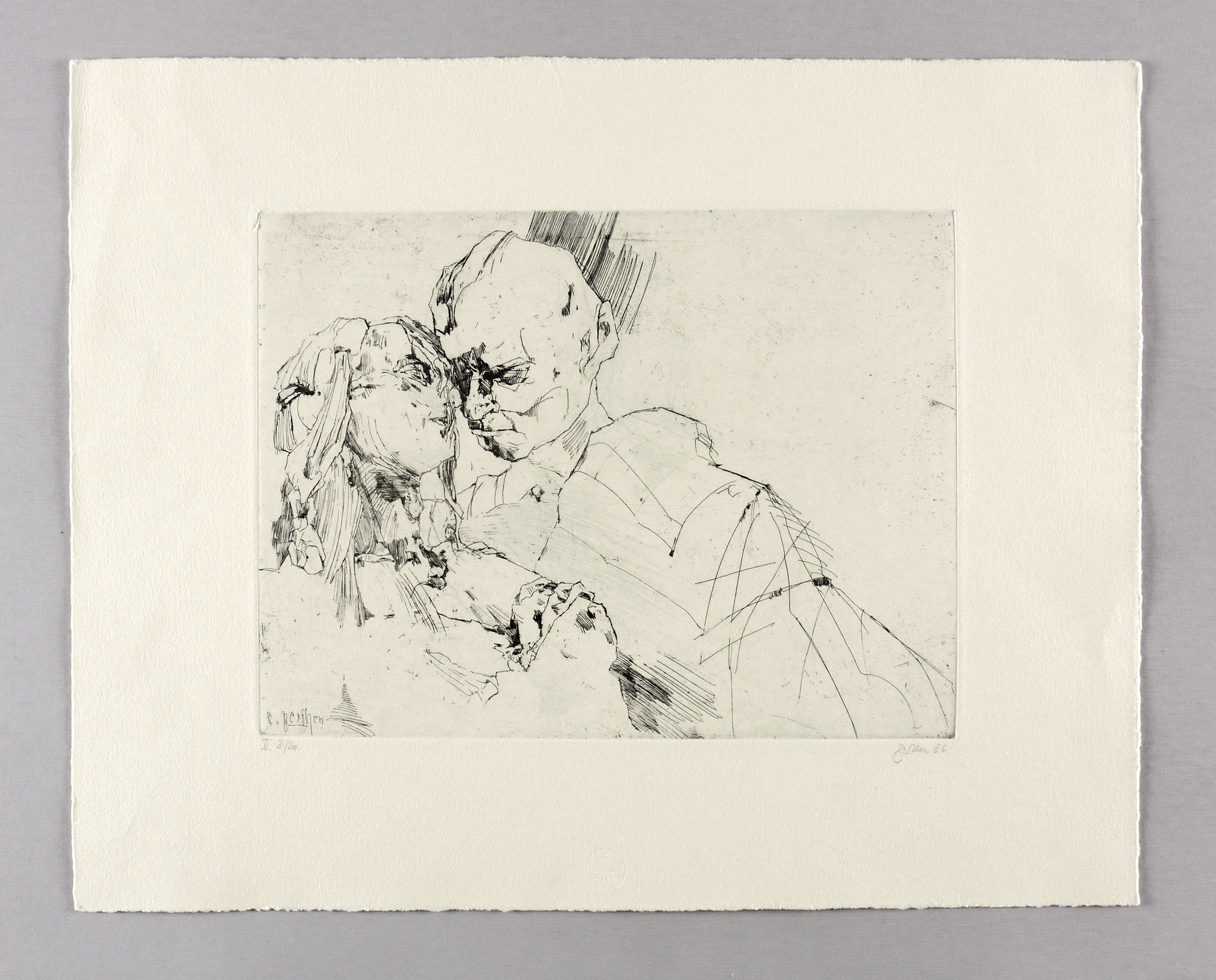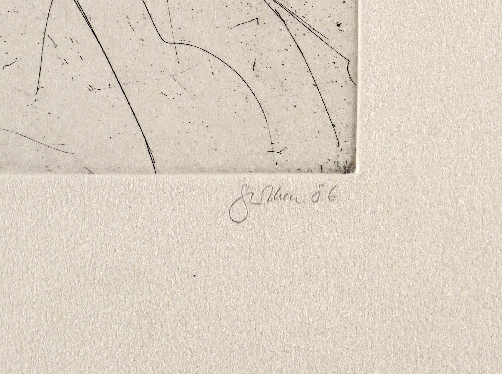 1986. Radierung / Strichätzung & Kaltnadel, mit Plattenton, in Schwarz, auf chamois Hahnemühle. – Originale Künstlergrafik, von Christine Perthen. – Auflage Exemplar Nr. 8/20. – 24,2 x 32,0 cm (Darstellung / Platte), 39 x 49 cm (Blatt).