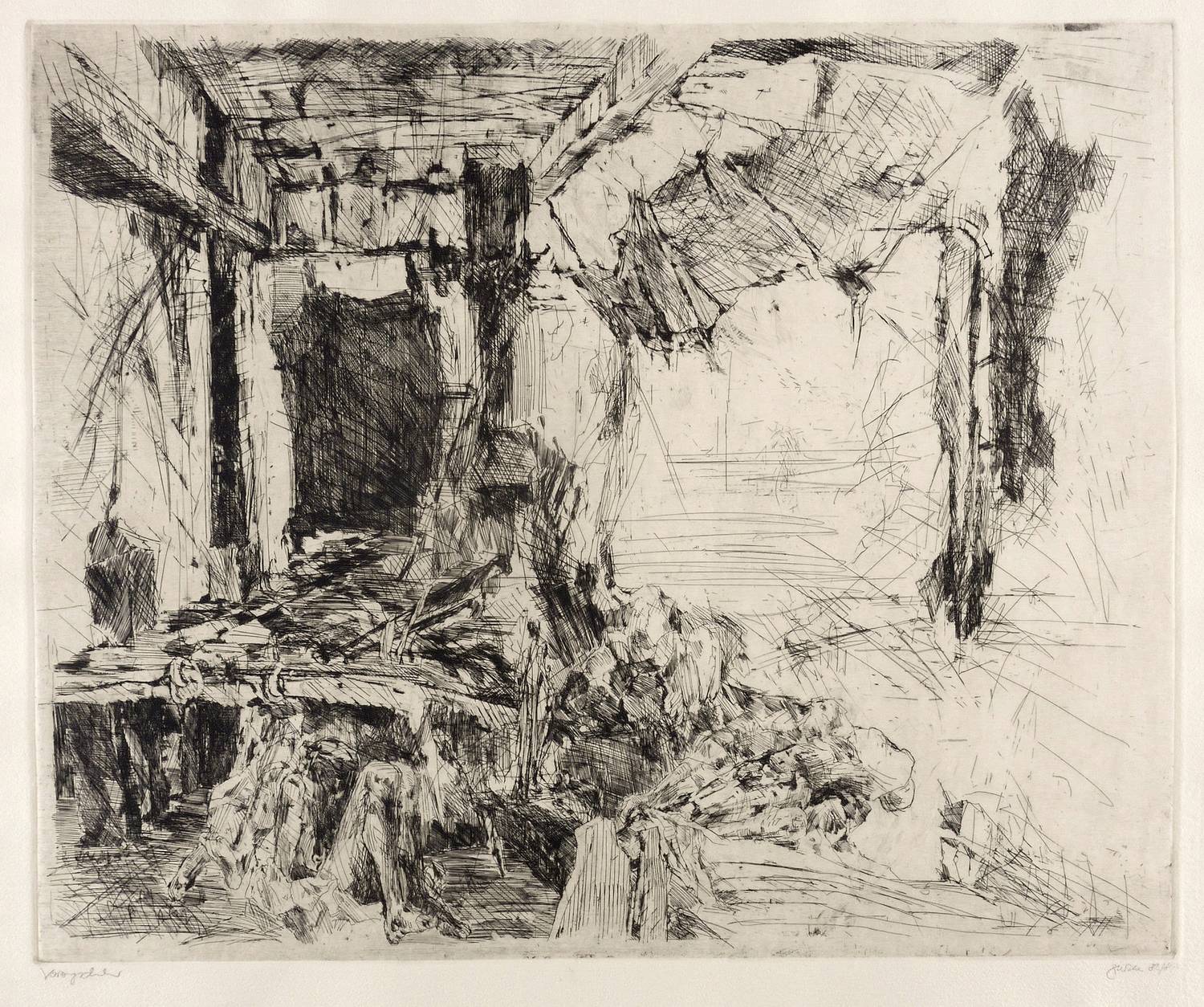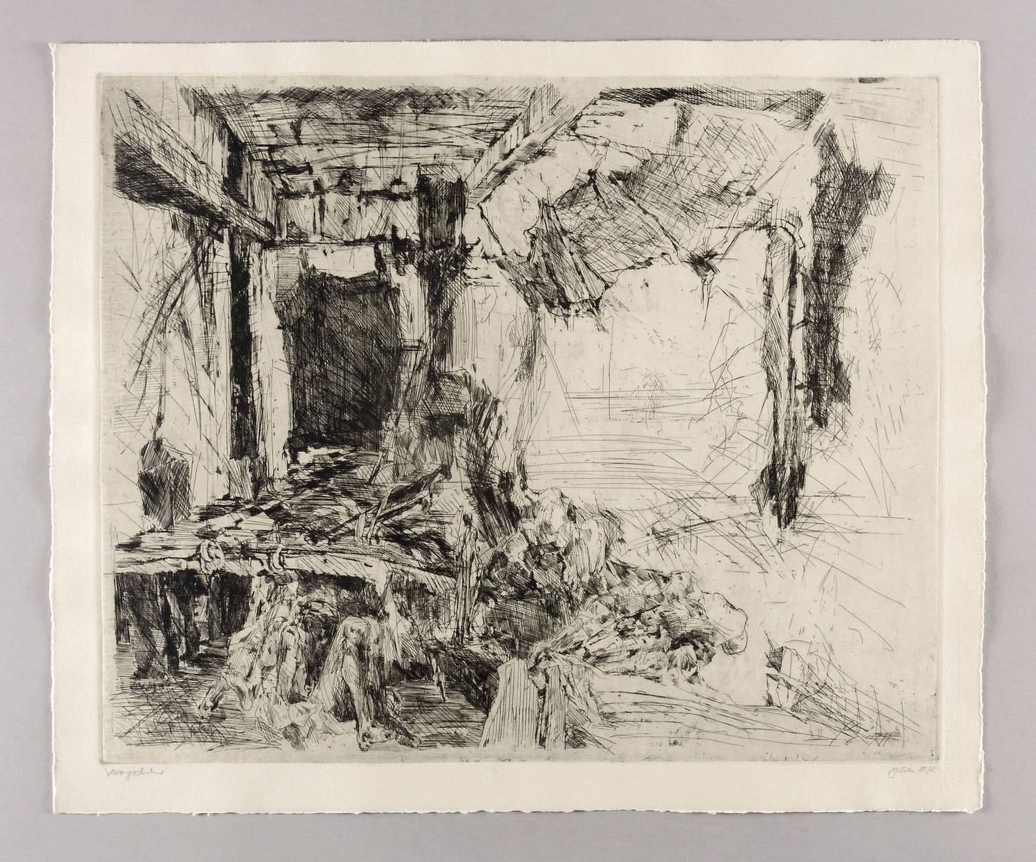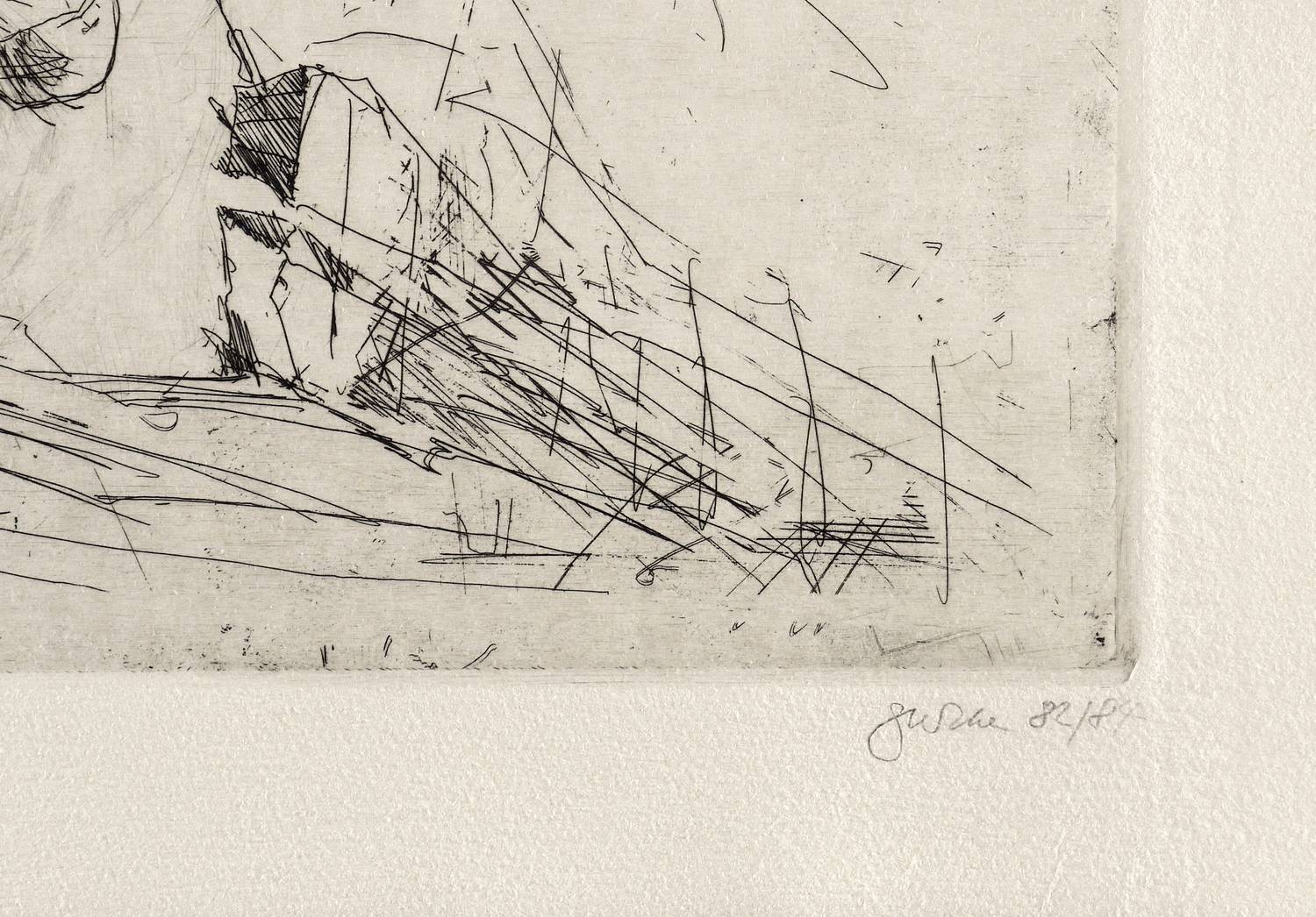 1982/1984. Radierung / Strichätzung, in Schwarz, auf schwerem chamois Hahnemühle. – Originale Künstlergrafik, von Christine Perthen. – Vorzugsdruck. – 47,5 x 58,0 cm (Darstellung / Platte), 54 x 65 cm (Blatt).