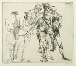 1991. Radierung / Strichätzung & Kaltnadel, in Schwarz, auf hellbeige getöntem Velinkarton. – Originale Künstlergrafik, von Christine Perthen. – Probedruck. – 19,9 x 23,1 cm (Darstellung / Platte), 23 x 27 cm (Blatt).