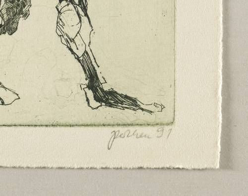 Rechts unten in Bleistift signiert und datiert: ″Perthen 91″. Links Auflagenbezeichnung: ″Probedruck″. In der Platte rechts oben Signatur und Jahr: ″perthen 91″. – Sehr guter Zustand.