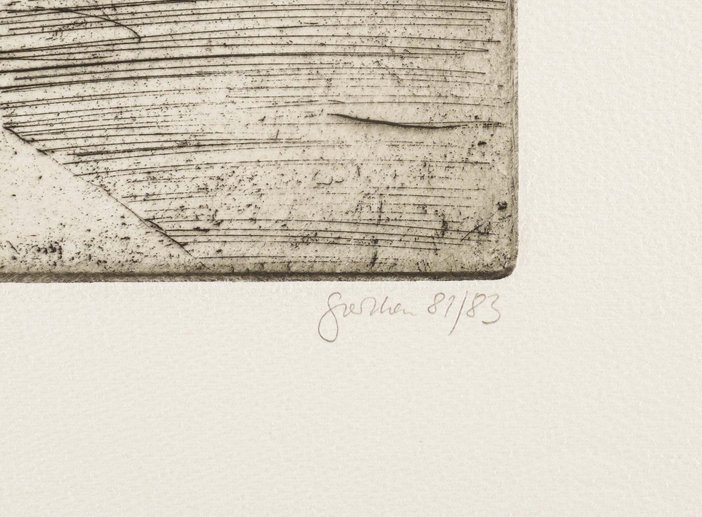 1981/1983. Radierung / Vernis mou & Strichätzung, in Schwarz, auf hellchamois Hahnemühle. – Originale Künstlergrafik, von Christine Perthen. – Vorzugsdruck. – 39,5 x 32,0 cm (Darstellung / Platte), 54 x 40 cm (Blatt).