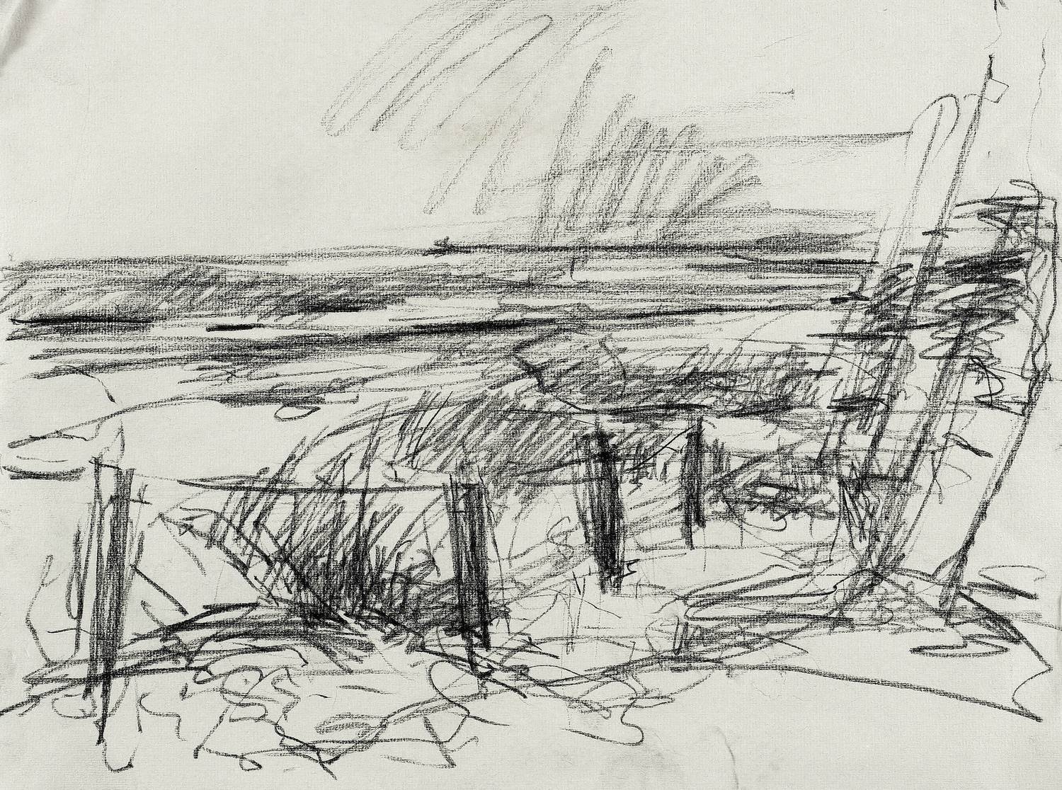 2014. Zeichnung / Kohlezeichnung, auf Maschinenbütten. – Originale Künstlergrafik, von Uwe Peschel. – Unikat. – 30,5 x 41,0 cm (Darstellung / Blatt).