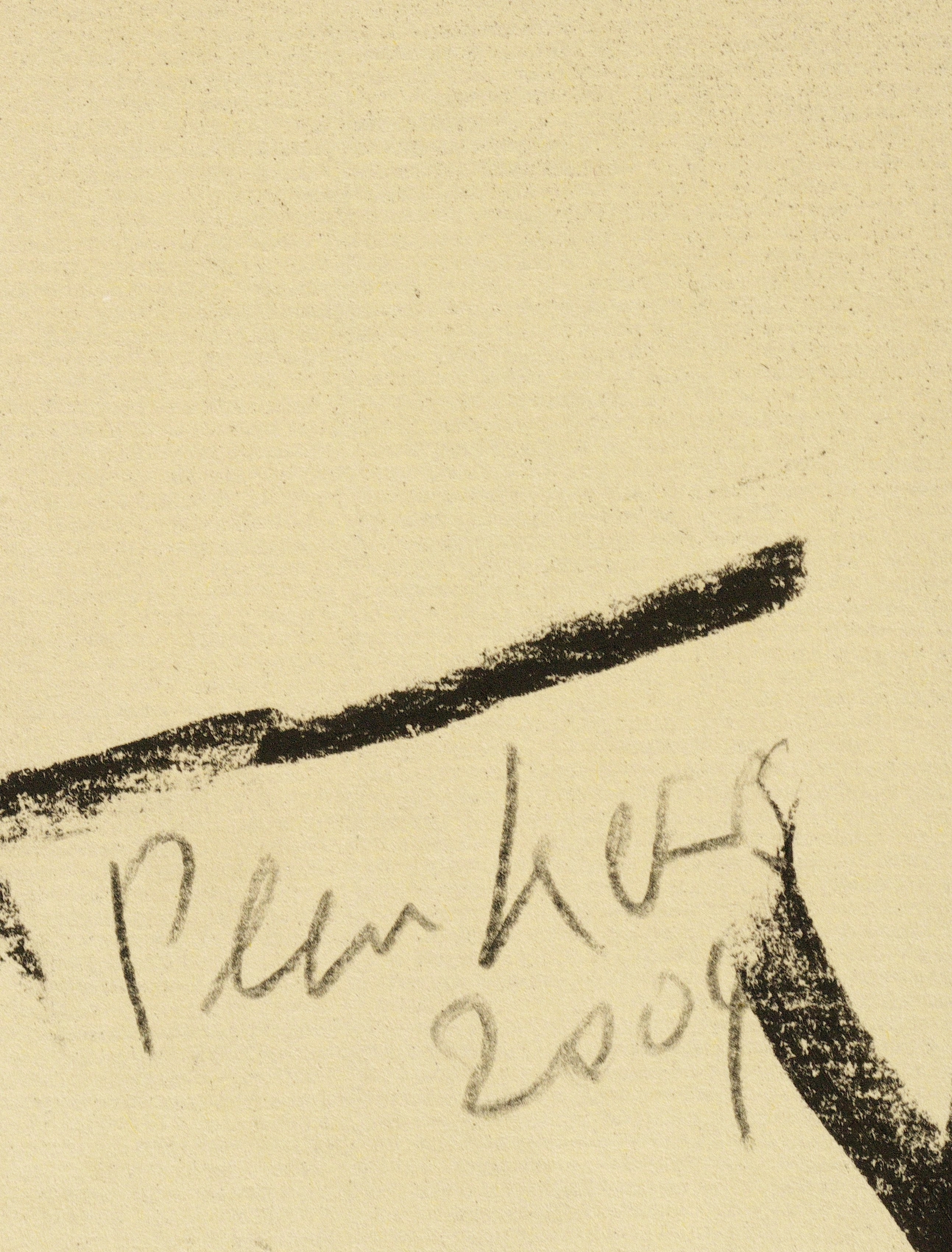 2004. Zeichnung / Kohlezeichnung, partiell gewischt, auf hellbraunem Achat-Bütten. – Originale Künstlergrafik, von Stefan Plenkers. – Unikat. – 63,2 x 49,0 cm (Darstellung / Blatt).