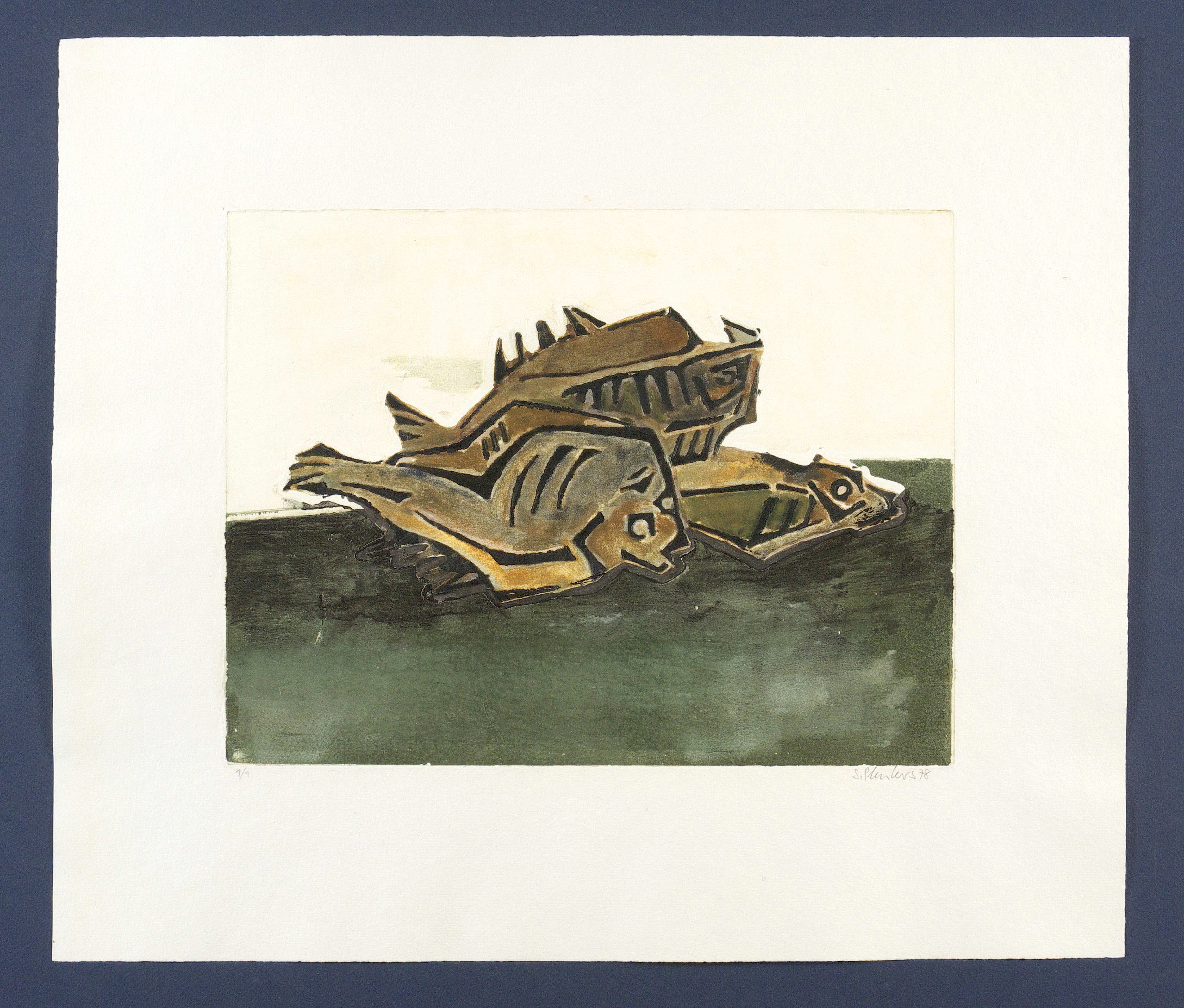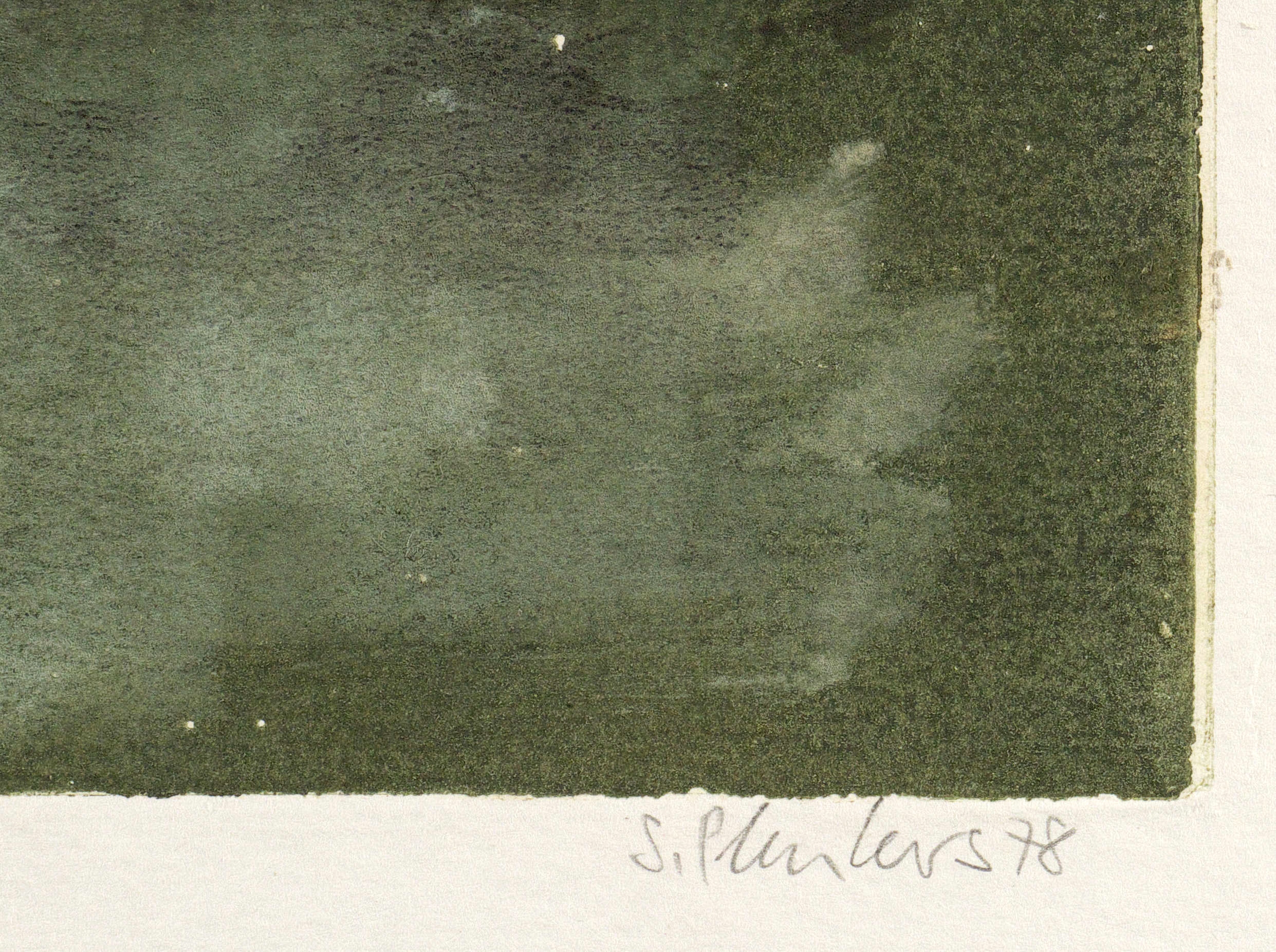 1978. Farbmonotypie & Prägedruck, in 4 Farben, auf weißem Aquarellkarton. – Originale Künstlergrafik, von Stefan Plenkers. – Auflage Exemplar Nr. 1/1 (Unikat). – 24,6 x 32,2 cm (Darstellung / Platte), 41 x 48 cm (Blatt).