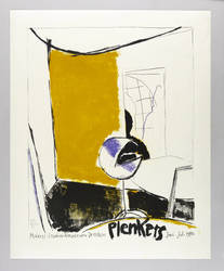 1986. Farblithografie / Kreide- & Pinsellithografie, in 3 Farben, auf glattem hellchamois Velinkarton. – Originales Künstlerplakat, von Stefan Plenkers. – Auflage Exemplar Nr. 37/44. – 77 x 62 cm (Blatt), 65,9 x 52,8 cm (Darstellung / mit Schrift).