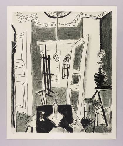 1985. Farblithografie / Kreide- & Pinsellithografie, in Hellgrau, Grau & Schwarz, auf glattem hellchamois Velinkarton. – Originale Künstlergrafik, von Stefan Plenkers. – Auflage Exemplar Nr. 8/25. – 60,0 x 49,6 cm (Darstellung / Druckbild), 66 x 54 cm (Blatt).