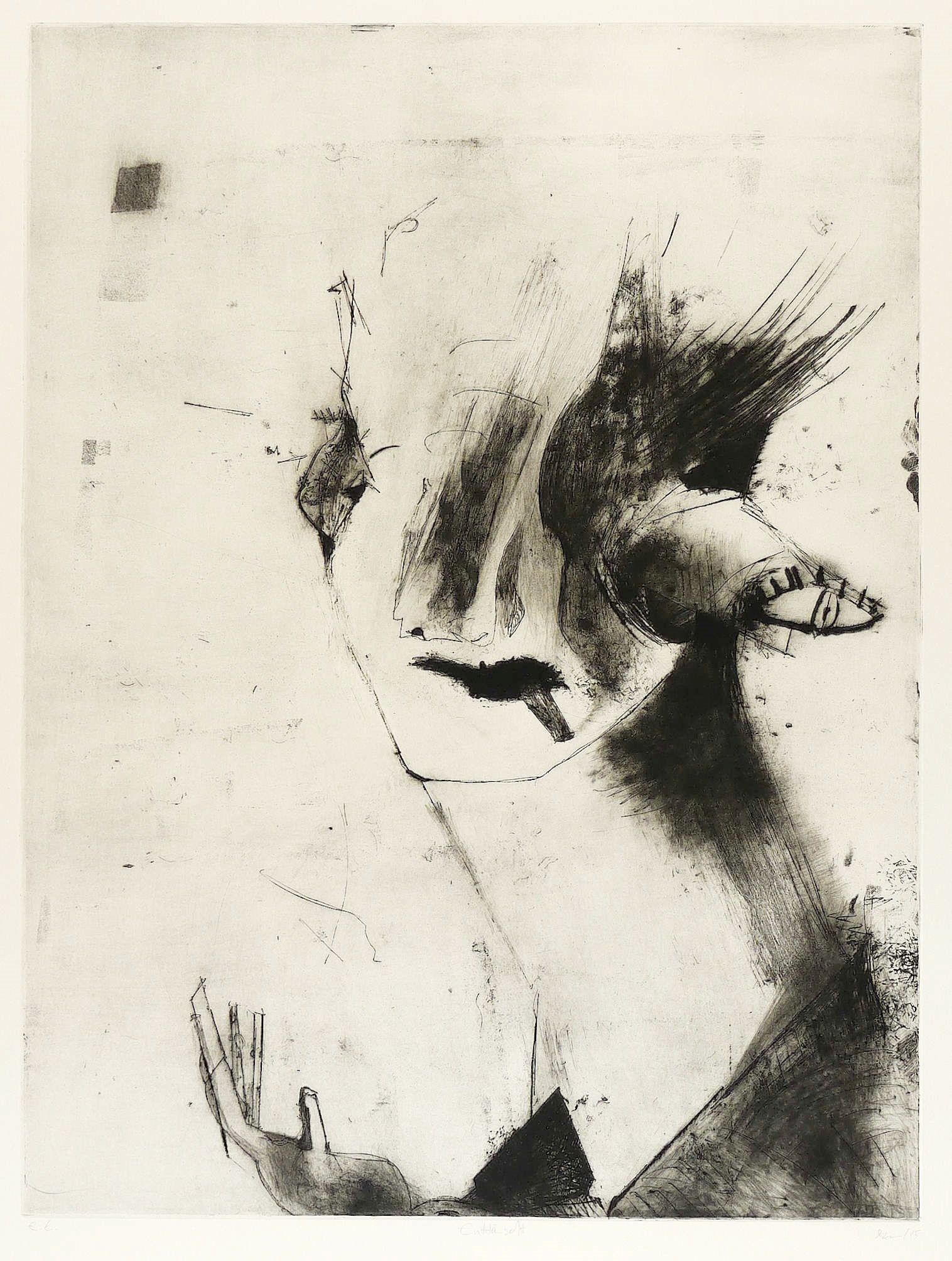 2015. Radierung / Strichätzung & Kaltnadel, partiell geschliffen, mit Plattenton, in Schwarz, auf Büttenkarton. – Originale Künstlergrafik, von Tanja Pohl. – Künstlerexemplar (e.a.). – 78,5 x 59,5 cm (Darstellung / Platte), 98 x 79 cm (Blatt).