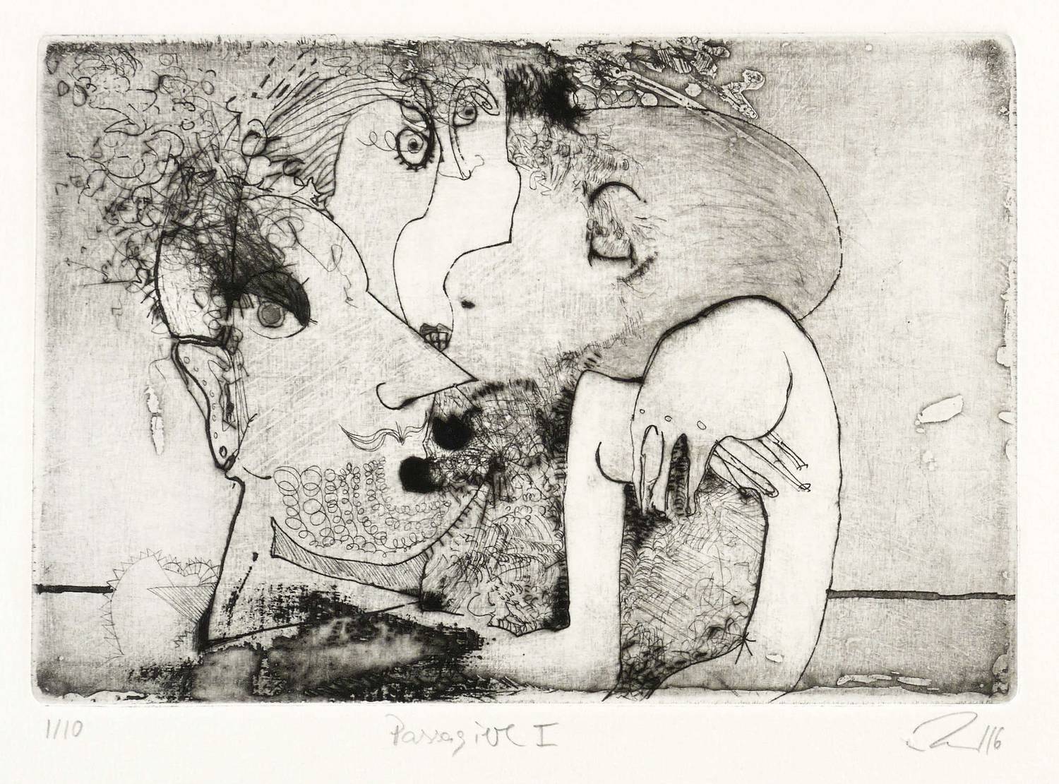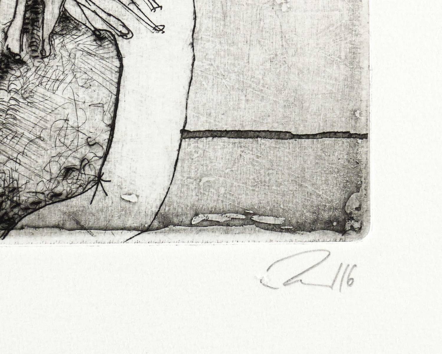2016. Radierung / Strichätzung & Reservage, partiell geschliffen, mit Plattenton, in Schwarz, auf Bütten. – Originale Künstlergrafik, von Tanja Pohl. – Auflage Exemplar Nr. 1/10. – 13,8 x 20,5 cm (Darstellung / Platte), 29 x 40 cm (Blatt).
