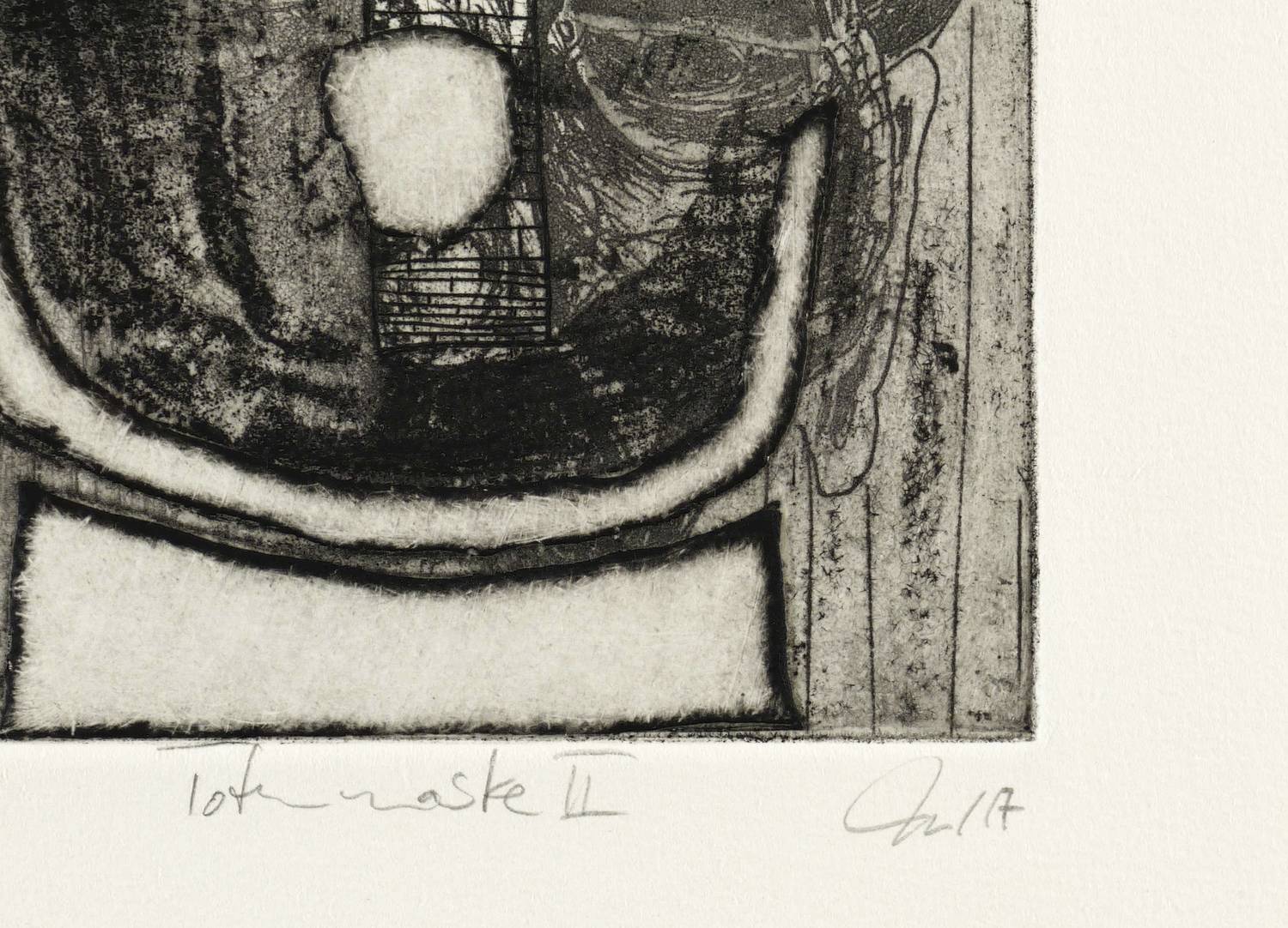 2017. Radierung / Strichätzung, Aquatinta & Reservage, mit Prägedruck, in Schwarz, auf Büttenkarton. – Originale Künstlergrafik, von Tanja Pohl. – Auflage Exemplar Nr. 2/5. – 16,0 x 12,2 cm (Darstellung / Platte), 40 x 27 cm (Blatt).