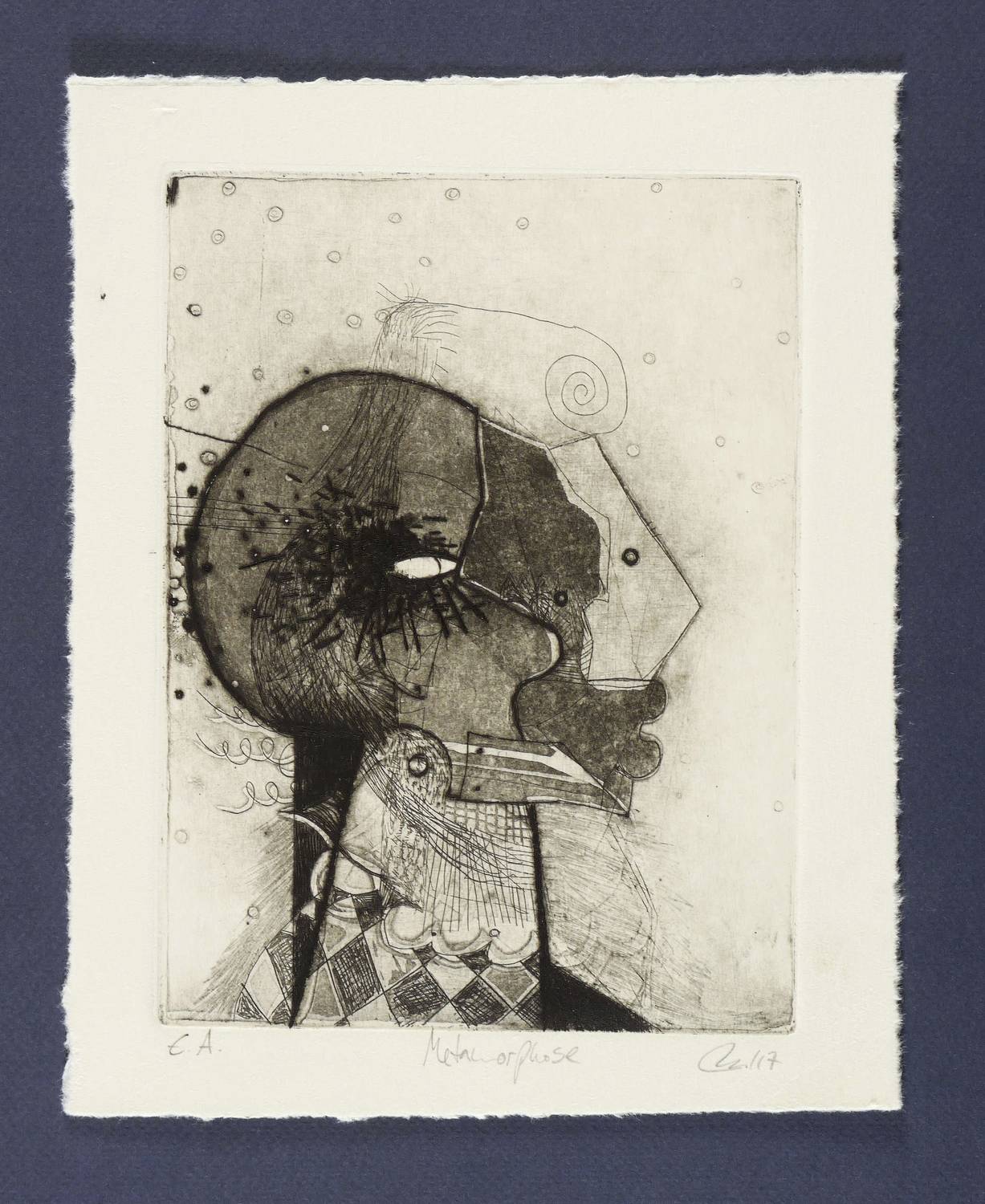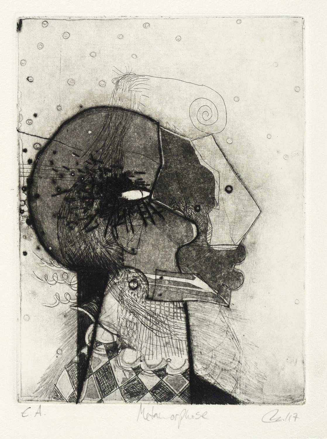 2017. Radierung / Strichätzung, Aquatinta & Reservage, in Schwarz, auf Büttenkarton. – Originale Künstlergrafik, von Tanja Pohl. – Künstlerexemplar (e.a.). – 19,8 x 14,8 cm (Darstellung / Platte), 24 x 19 cm (Blatt).