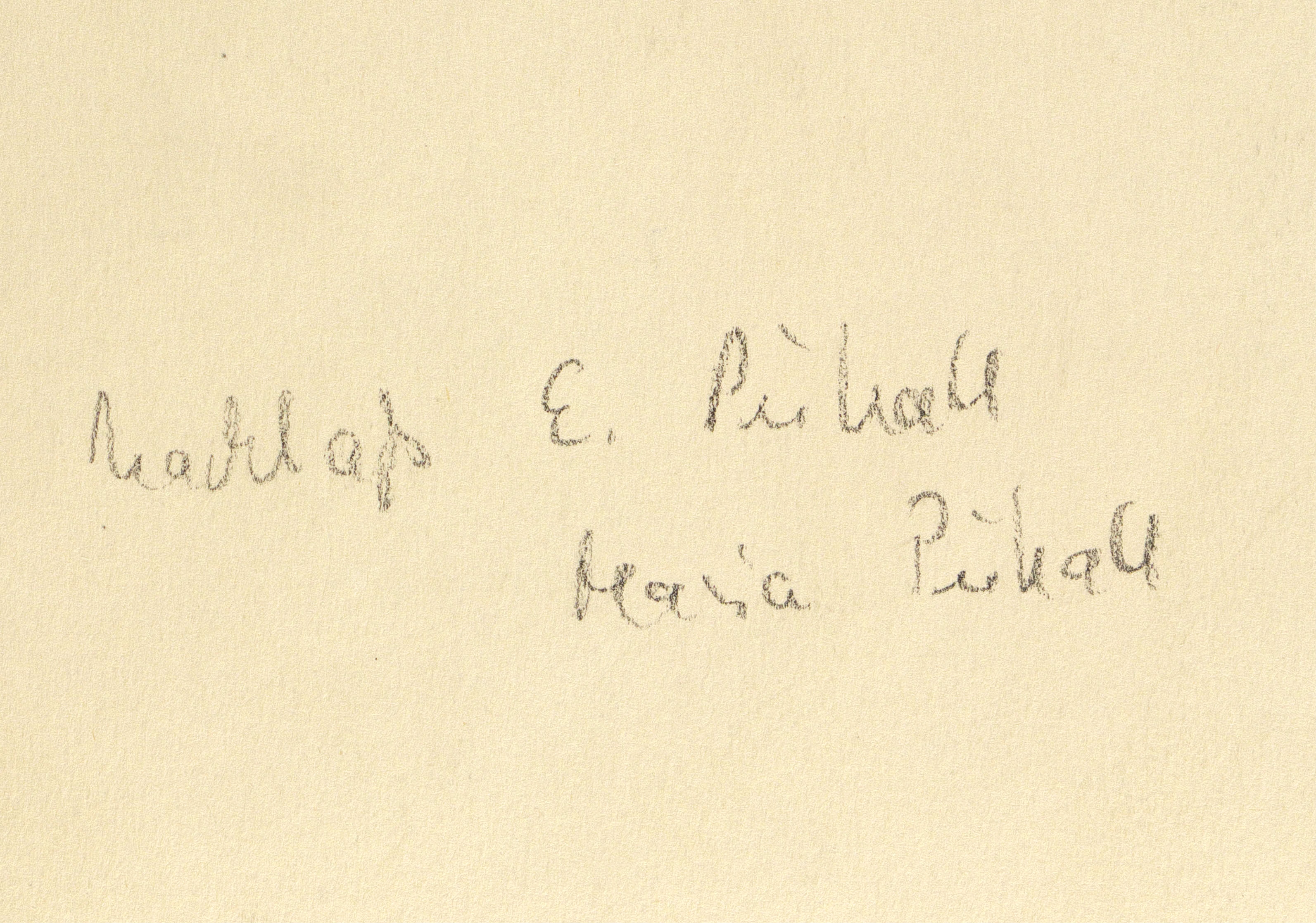 Verso in Bleistift betitelt, datiert sowie bezeichnet: ″Nachlaß E. Pukall / Maria Pukall″. Dazu Künstler-Nachlass-Stempel. – Kleine Knickspur an der rechten unteren Ecke. Guter Erhaltungszustand.