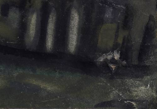 Schmidt B 1396. – Rechts unten in Bleistift signiert und datiert: ″Qu. 64″. – Verso weiteres verworfenes Aquarell ″Schneereste in Diebels Grund″ mit kaum lesbarer verwaschener Signatur und Datierung. - Provenienz: Privatbesitz Brandis bei Leipzig, Galerie am Sachsenplatz Leipzig. – In den Ecken originale Reißzwecklöchlein. Verso Montagereste. Oberfläche stellenweise geringfügig berieben. Löchlein in der rechten unteren Ecke wohl noch vom Künstler selbst hinterlegt. Insgesamt guter Zustand.