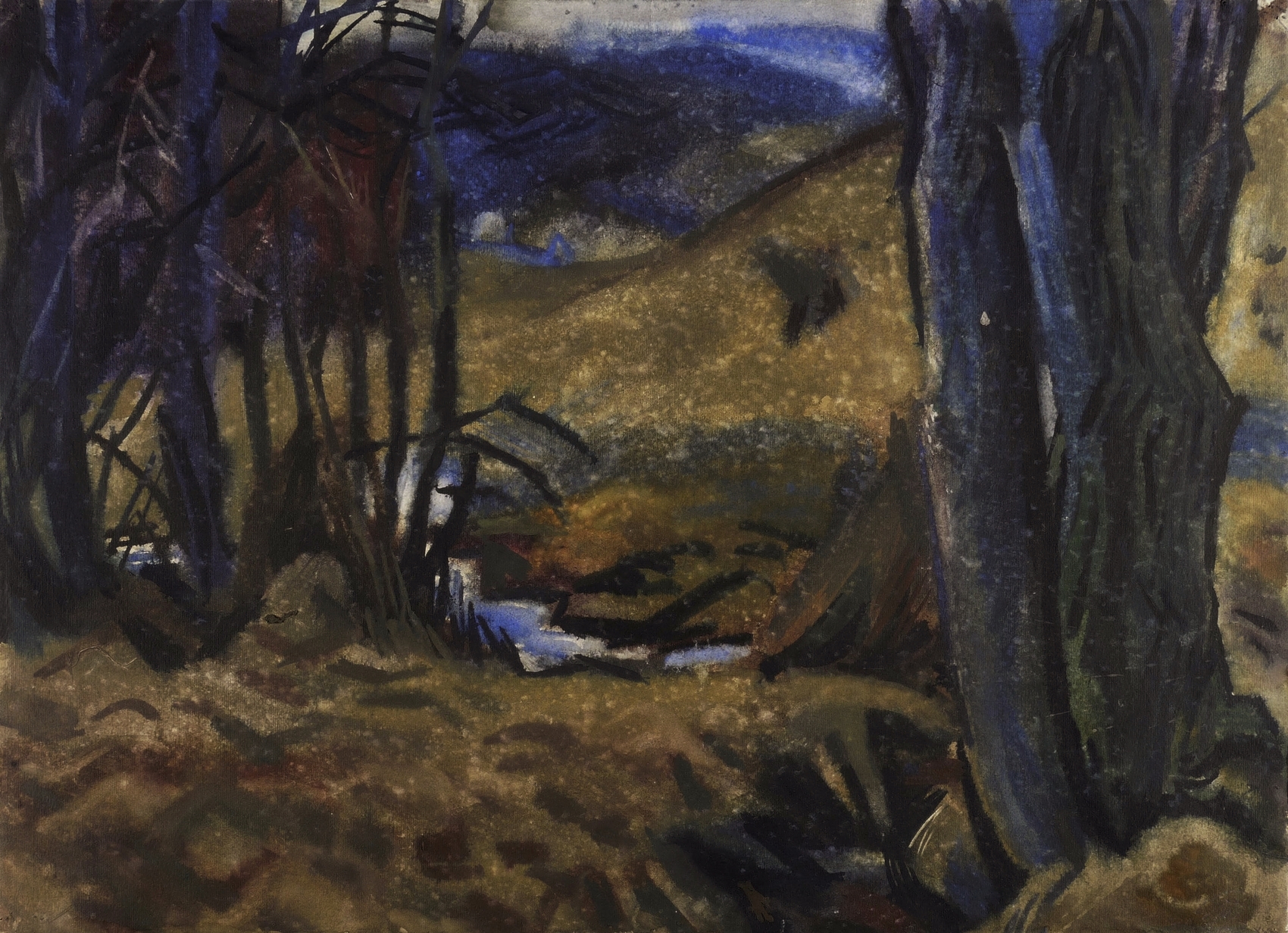Dittrich B 1136. – Rechts unten in Bleistift signiert und datiert: ″Qu. 30.3.62″. – Rückseite mit weiterem Aquarell ″Landschaft bei Karsdorf mit Luchberg″. - Schönes Beispiel für die eigentümliche Nassbehandlung, der Curt Querner manche seiner Aquarelle unterzog, indem er sie im noch feuchten Zustand gezielt Regenwetter aussetzte. - Provenienz: Privatbesitz Baden- Württemberg. – In den Ecken originale Reißzwecklöchlein. Vorderseite tadellos. Der Rücken im Randbereich durch ehemalige Montierung etwas beansprucht. Insgesamt aber guter Zustand.