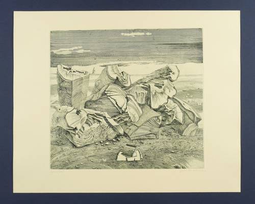 In der Platte unterhalb der Darstellung in Bleistift rechts signiert und links mit eigenhändiger Auflagenbezeichnung versehen. Am Blattrand rechts unten Wasserzeichen der Hahnemühle. – Aus der Mappe ″In diesem Land″, Leipzig 1979. – Papier leicht gerbäunt. Minimale Randmängel. Guter bis sehr guter Erhaltungszustand.