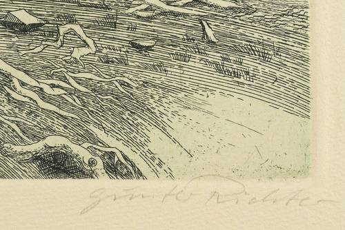 1979. Radierung / Strichätzung, in Schwarz, auf hellchamois Hahnemühle. – Originale Künstlergrafik, von Günter Richter. – Auflage Exemplar Nr. 227/250. – 30,6 x 34,0 cm (Darstellung / Platte), 40 x 50 cm (Blatt).
