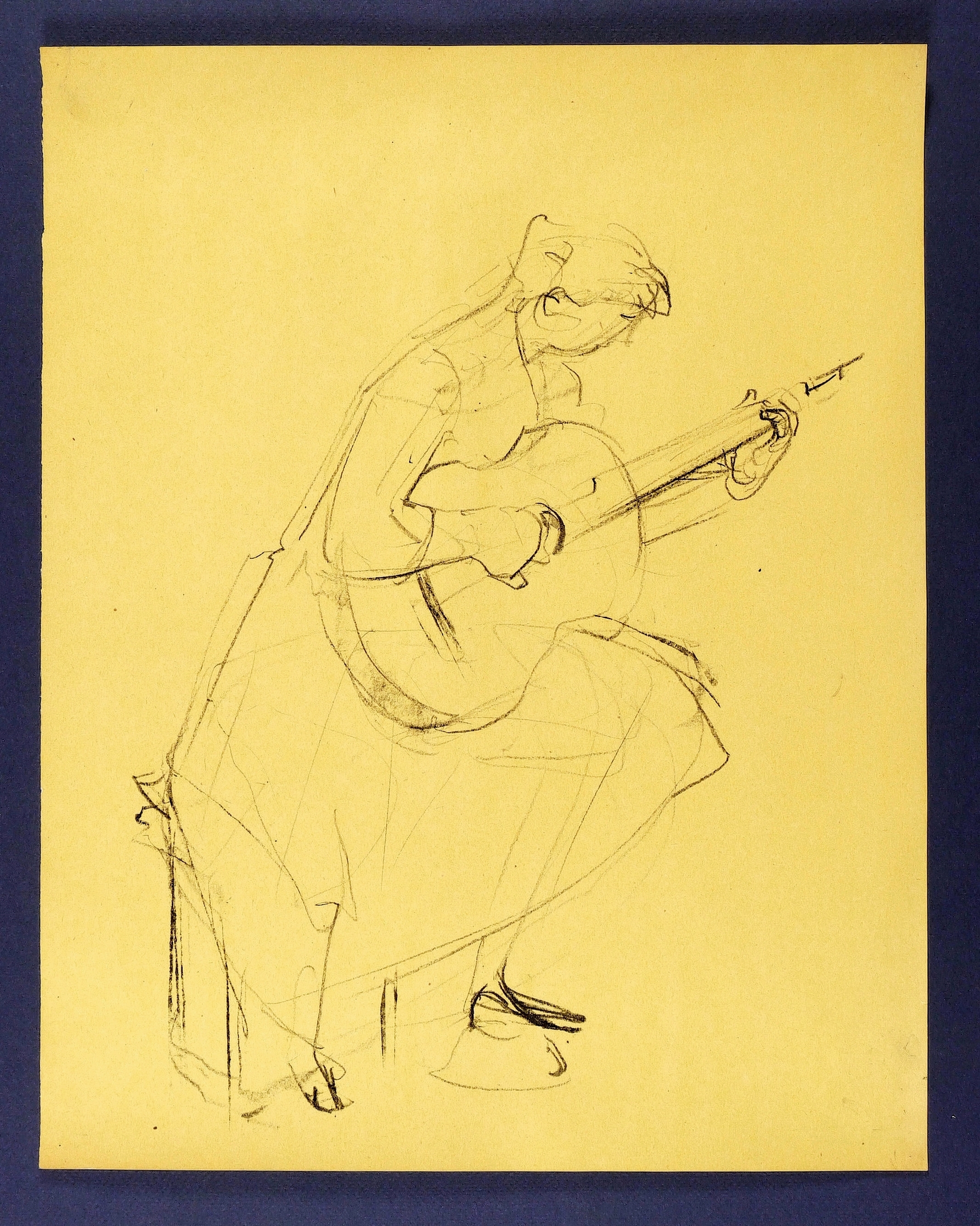 Um 1955. Zeichnung / Kreidezeichnung, in Schwarz, auf gelbem Umdruckpapier. – Originale Künstlergrafik, von Hans Theo Richter. – Unikat. – 34,3 x 27,4 cm (Darstellung), 42 x 33 cm (Blatt).