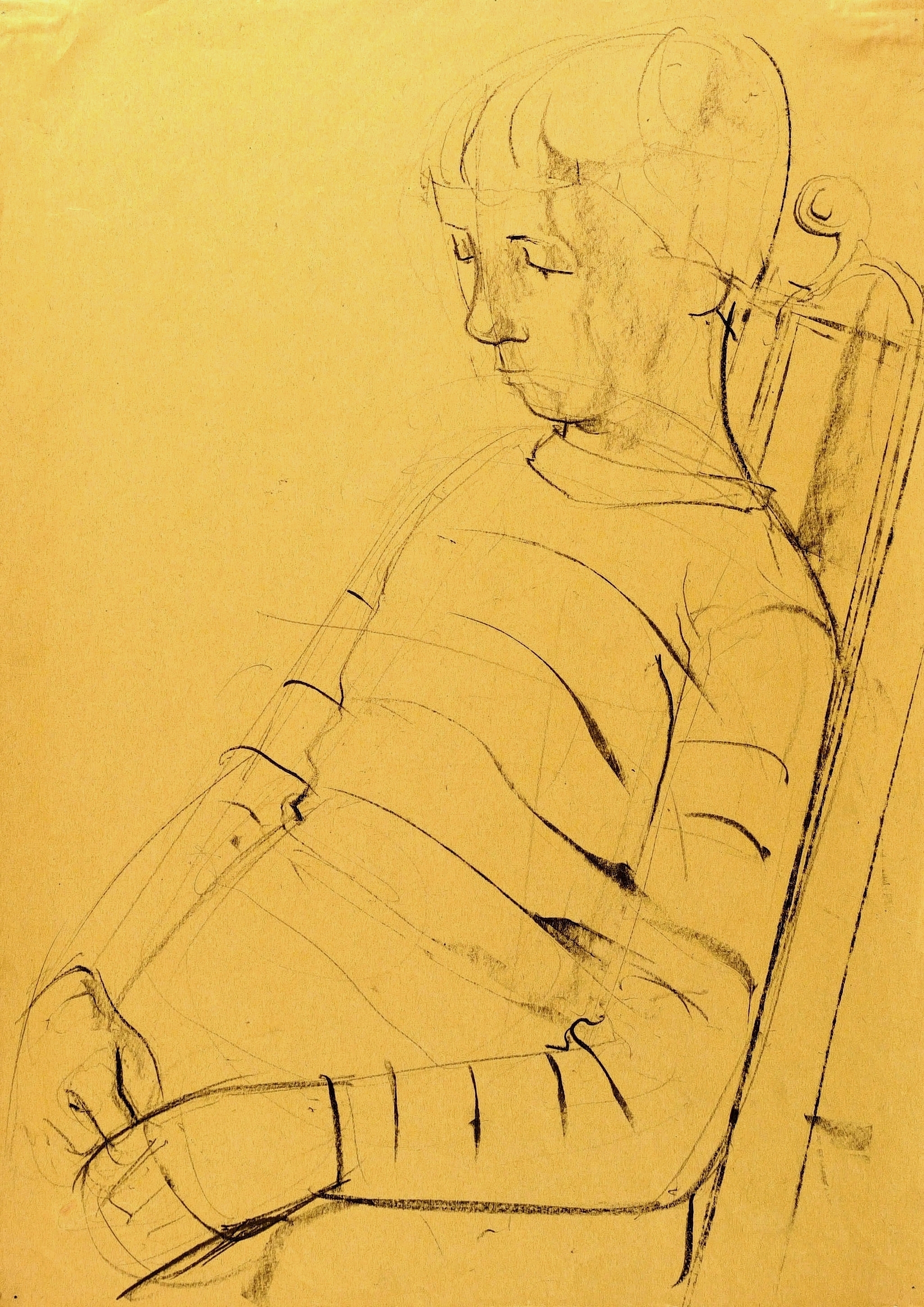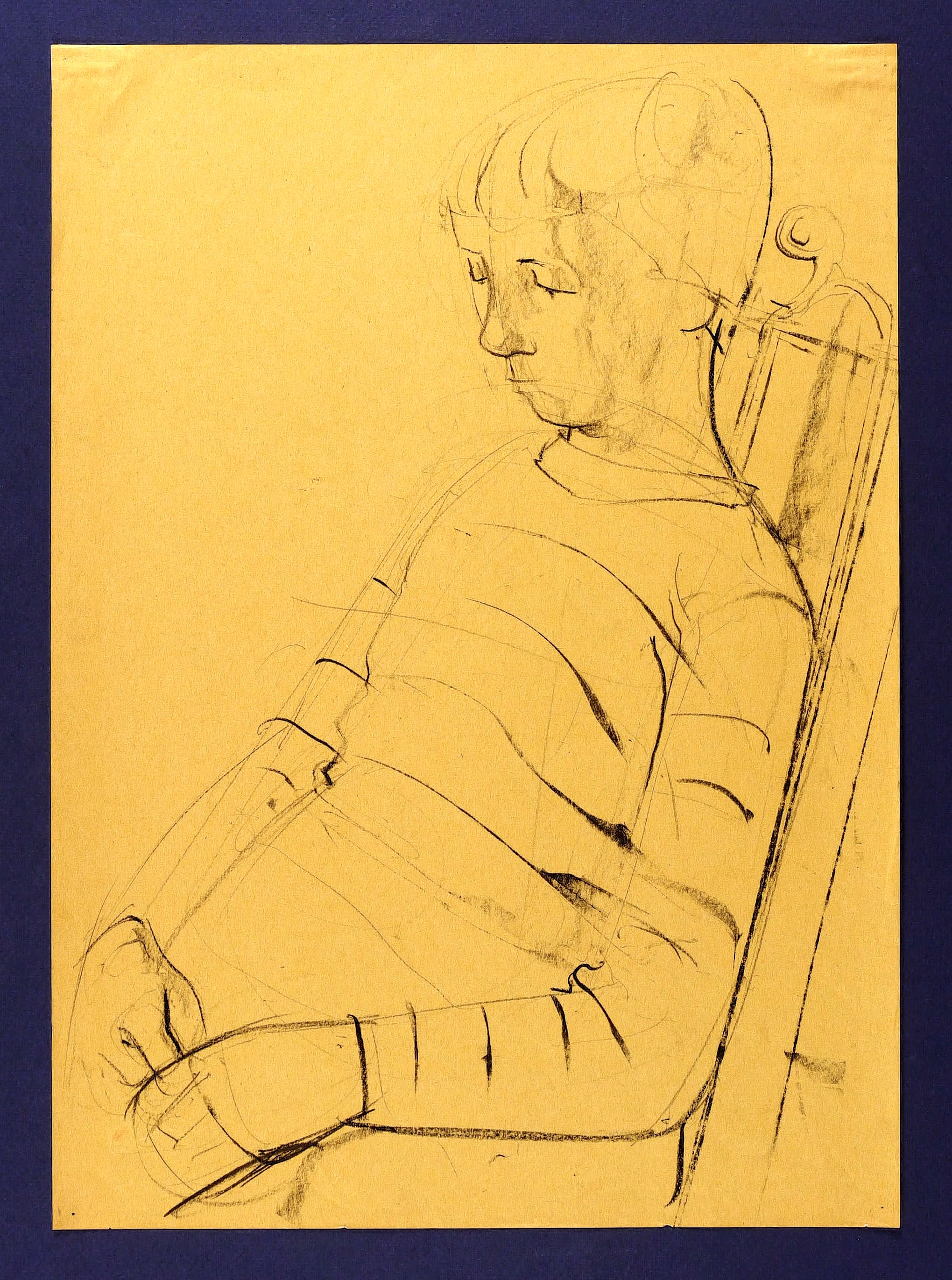 Um 1960. Zeichnung / Kreidezeichnung, in Schwarz, auf gelbem Umdruckpapier. – Originale Künstlergrafik, von Hans Theo Richter. – Unikat. – 41,9 x 30,0 cm (Darstellung / Blatt).