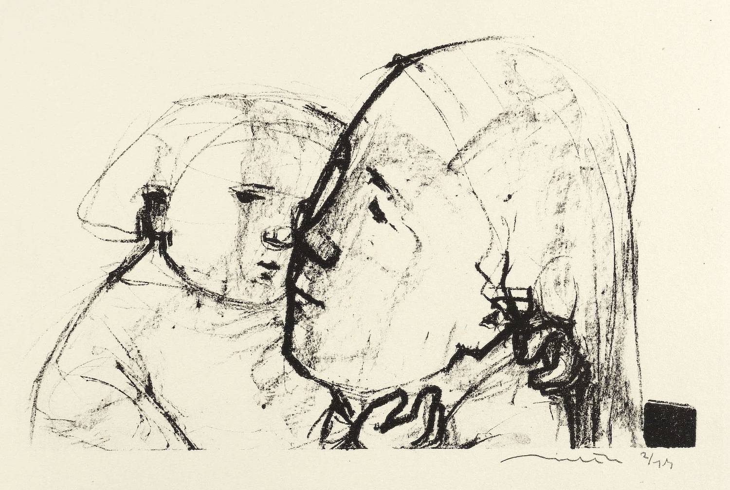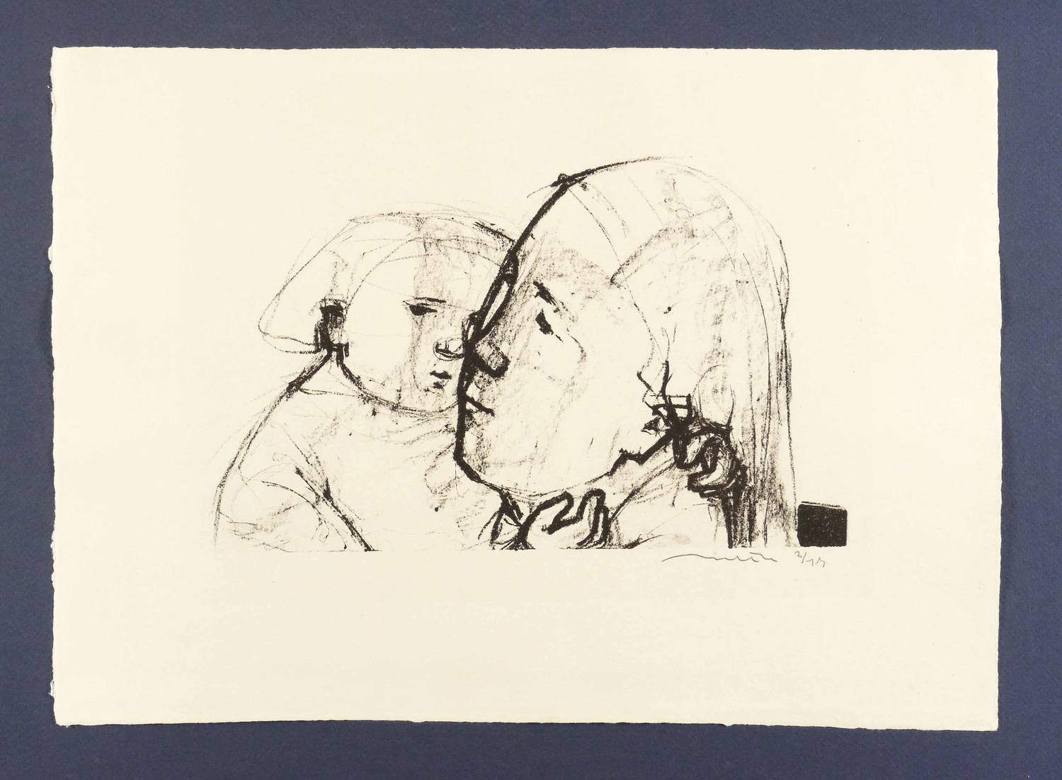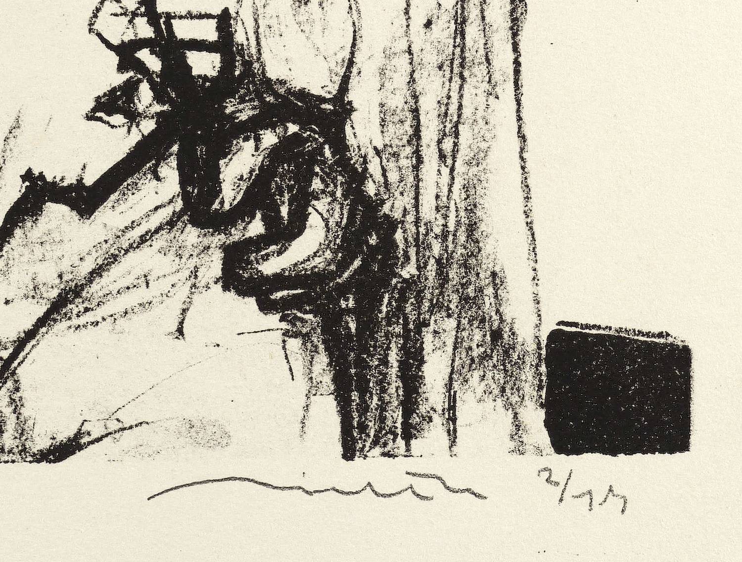 1955. Lithografie / Pinsel- & Kreidelithografie, in Schwarz, auf hellgelbem Büttenkarton. – Originale Künstlergrafik, von Hans Theo Richter. – Auflage Exemplar Nr. 2/17. – 17,5 x 28,3 cm (Darstellung), 30 x 42 cm (Blatt).