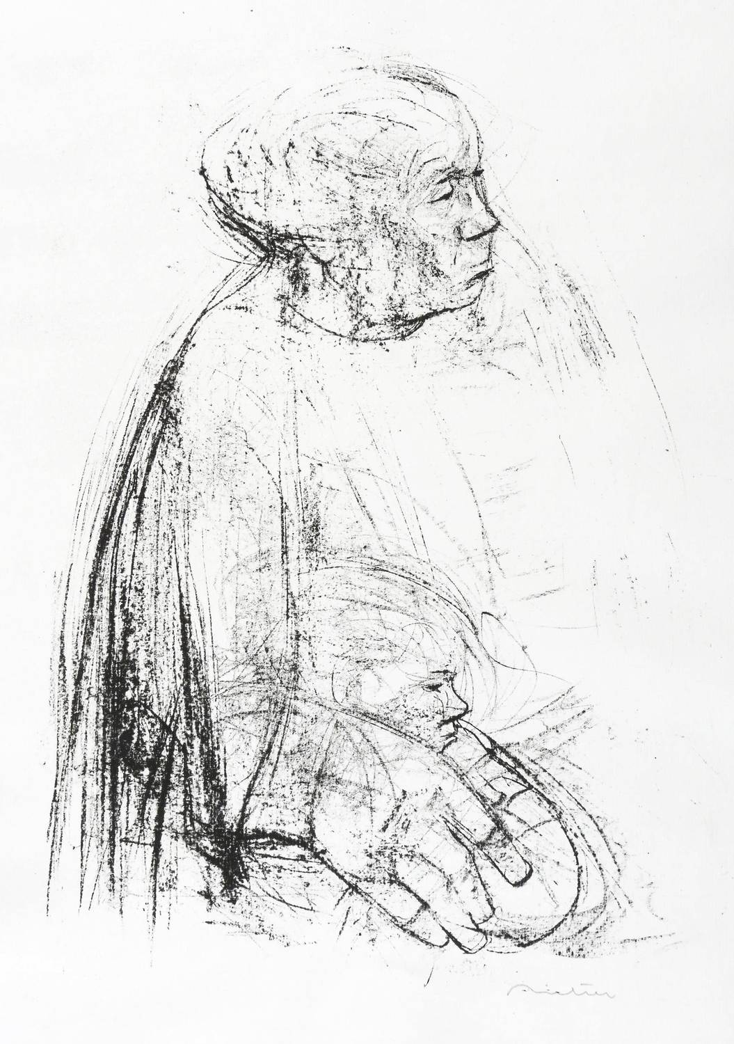 Richter, Hans Theo. – „Alte Frau mit Jungen, nach rechts blickend”.