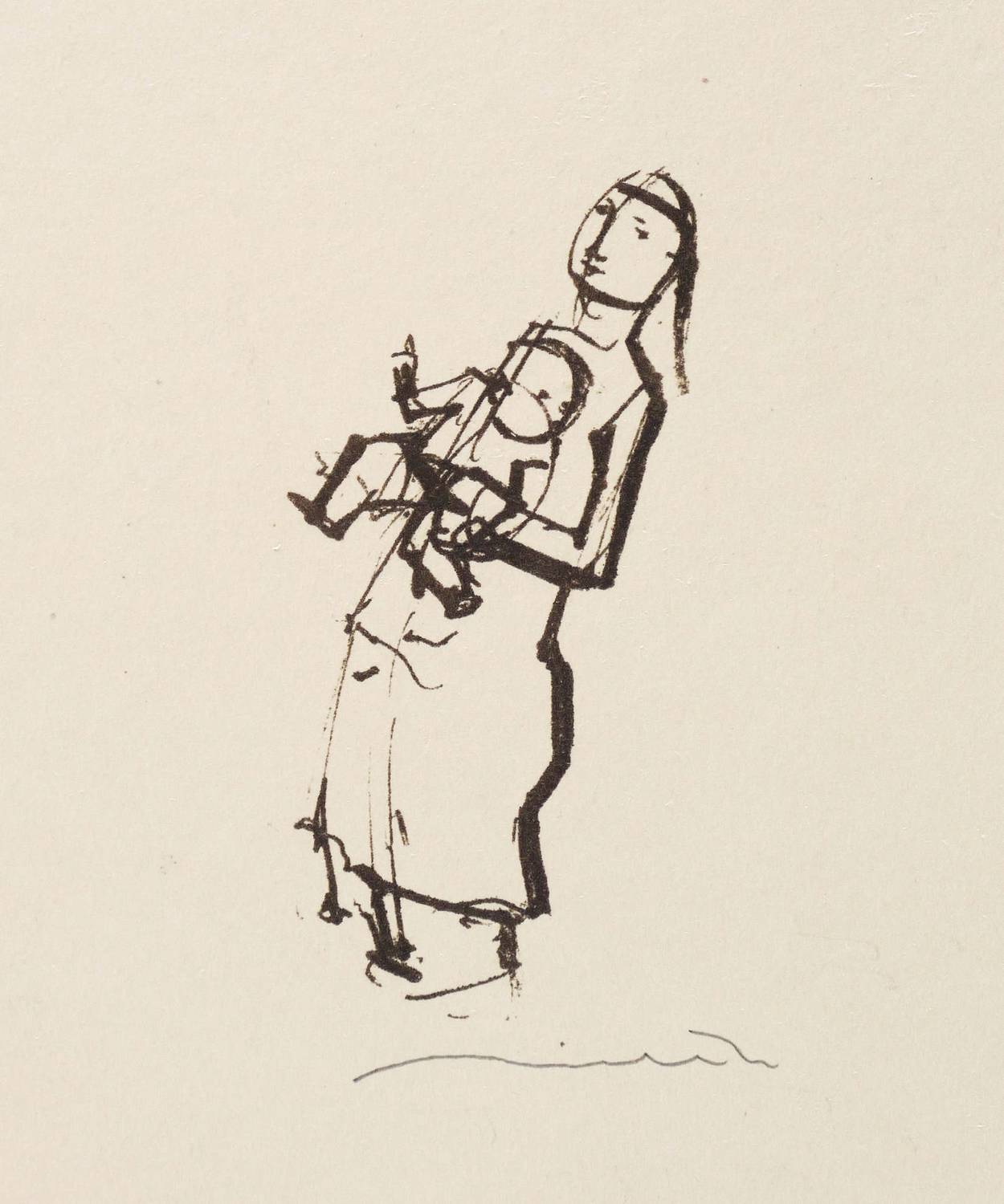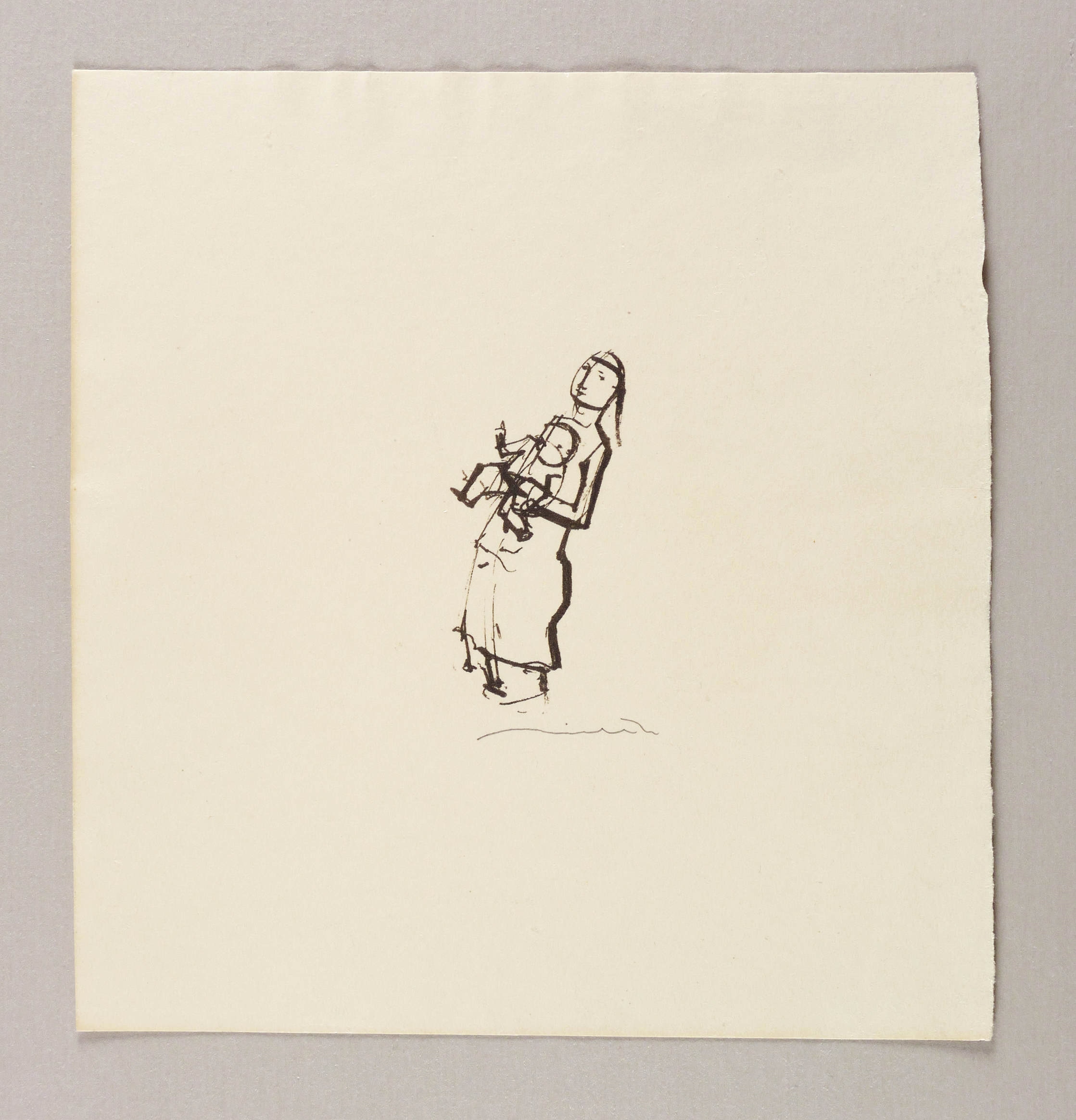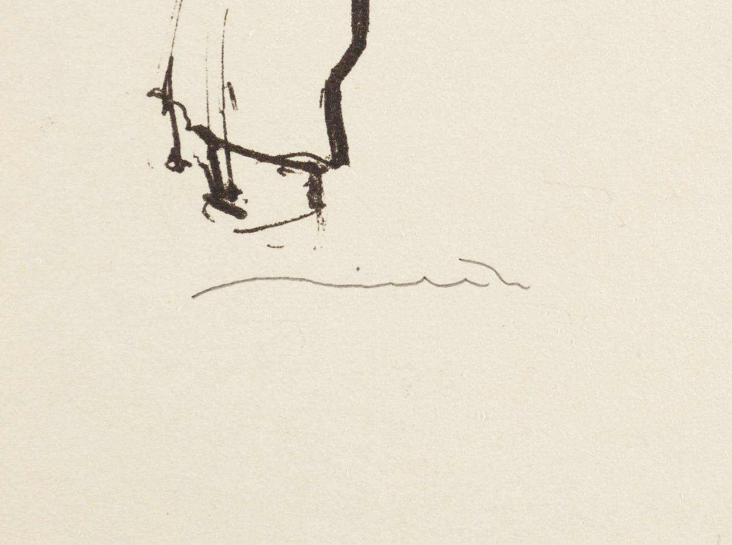 1959. Lithografie / Federlithografie, in Dunkelbraun, auf festem gelbem Velin. – Originale Künstlergrafik, von Hans Theo Richter. – 8,1 x 4,0 cm (Darstellung / Druckbild), 21 x 20 cm (Blatt).