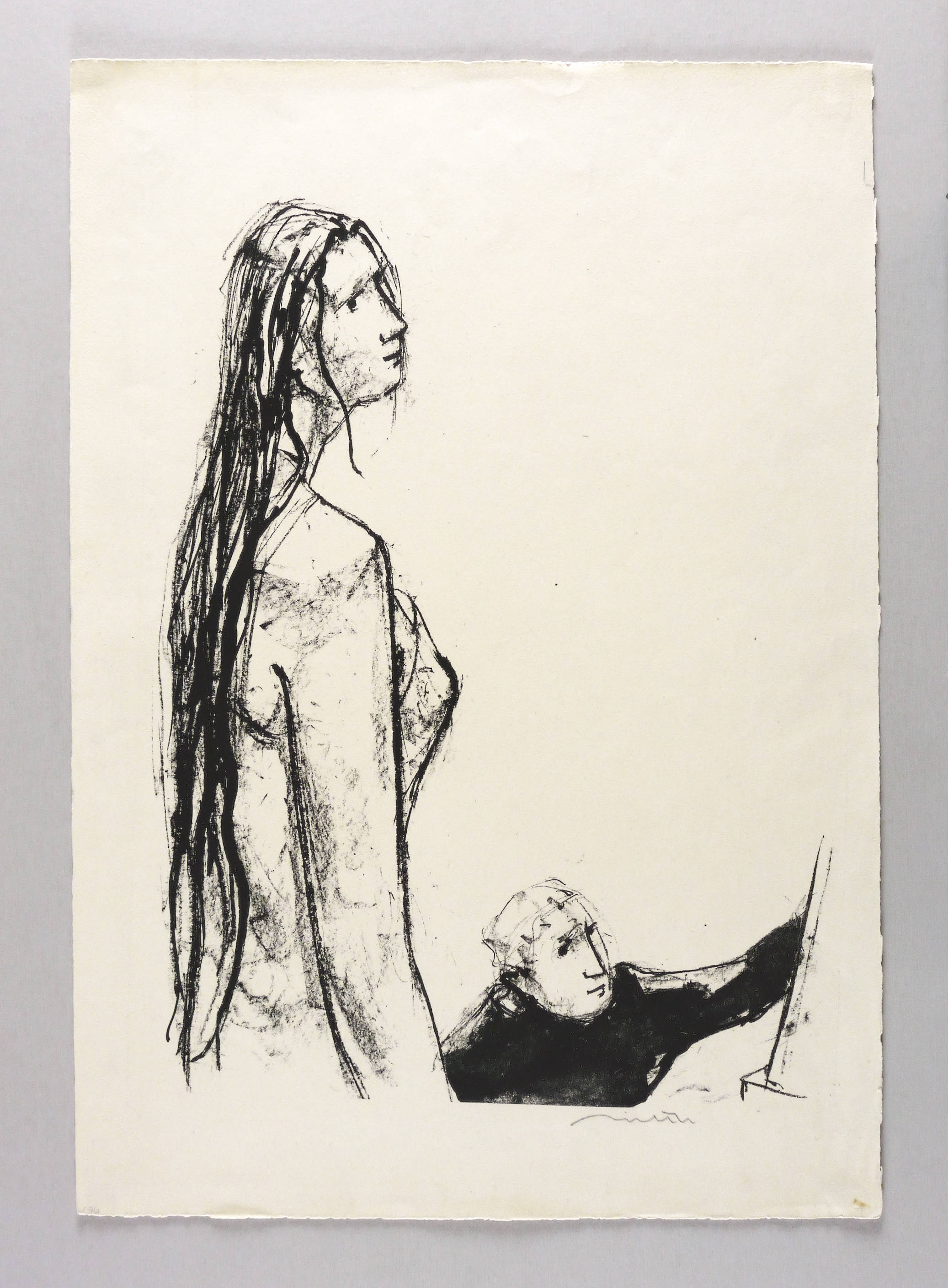 1957. Lithografie / Kreidelithografie, in Schwarz, auf hellchamois Velin. – Originale Künstlergrafik, von Hans Theo Richter. – 41,8 x 31,5 cm (Darstellung / Druckbild), 54 x 38 cm (Blatt).