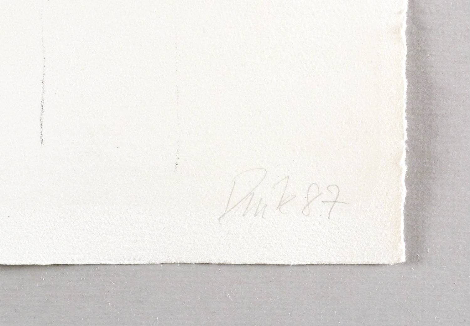 1987. Lithografie / Kreide- & Pinsellithografie, in Schwarz, auf weichem hellchamois Bütten. – Originale Künstlergrafik, von Arno Rink. – Auflage Exemplar Nr. 20/50. – 43,3 x 55,4 cm (Darstellung / Druckbild), 49 x 61 cm (Blatt).