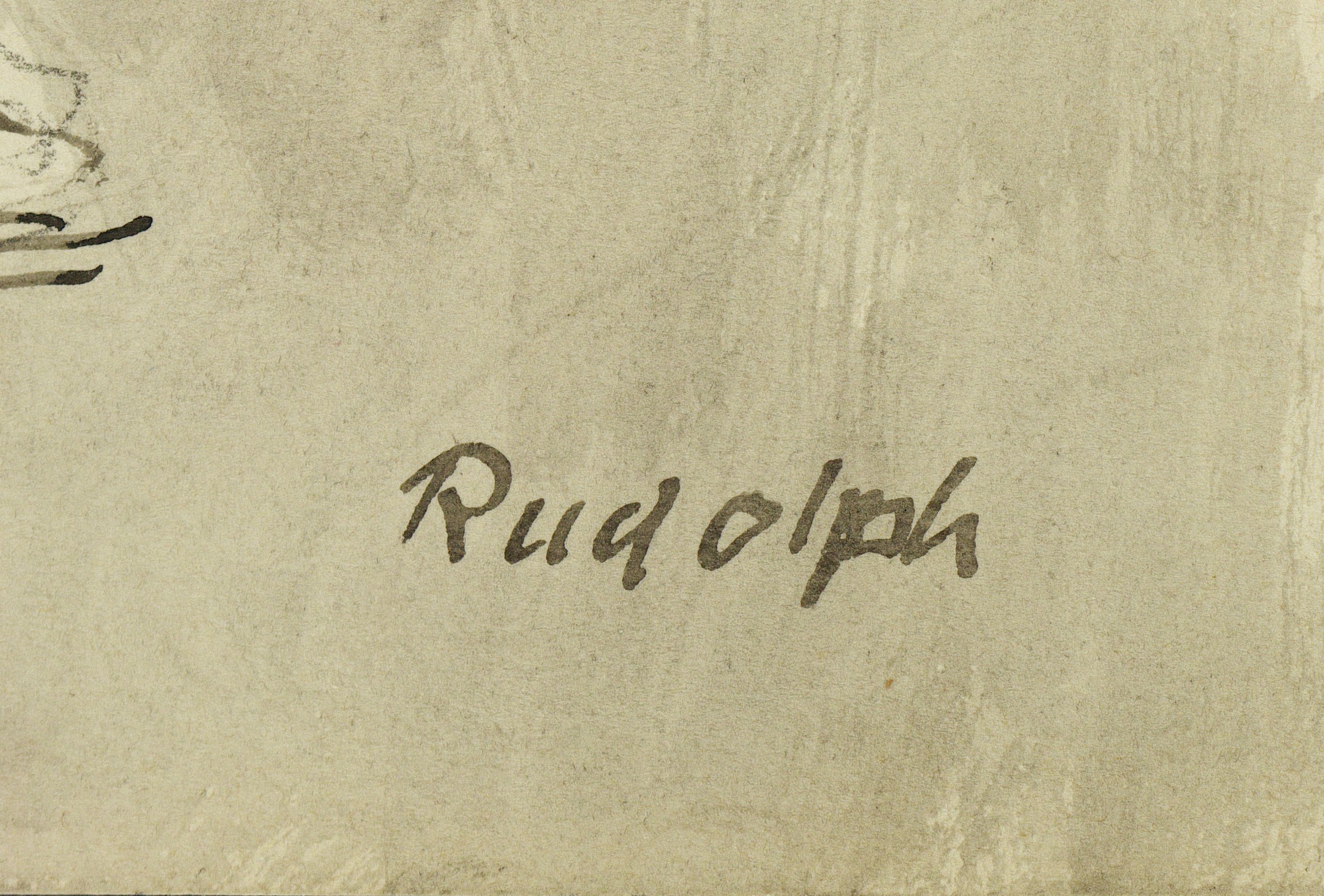 Um 1960. Zeichnung / Federzeichnung, in schwarzer Tusche über Bleistift, hellgrau laviert. – Originale Künstlergrafik, von Wilhelm Rudolph. – Unikat. – 29,8 x 21,0 cm (Darstellung / Blatt).