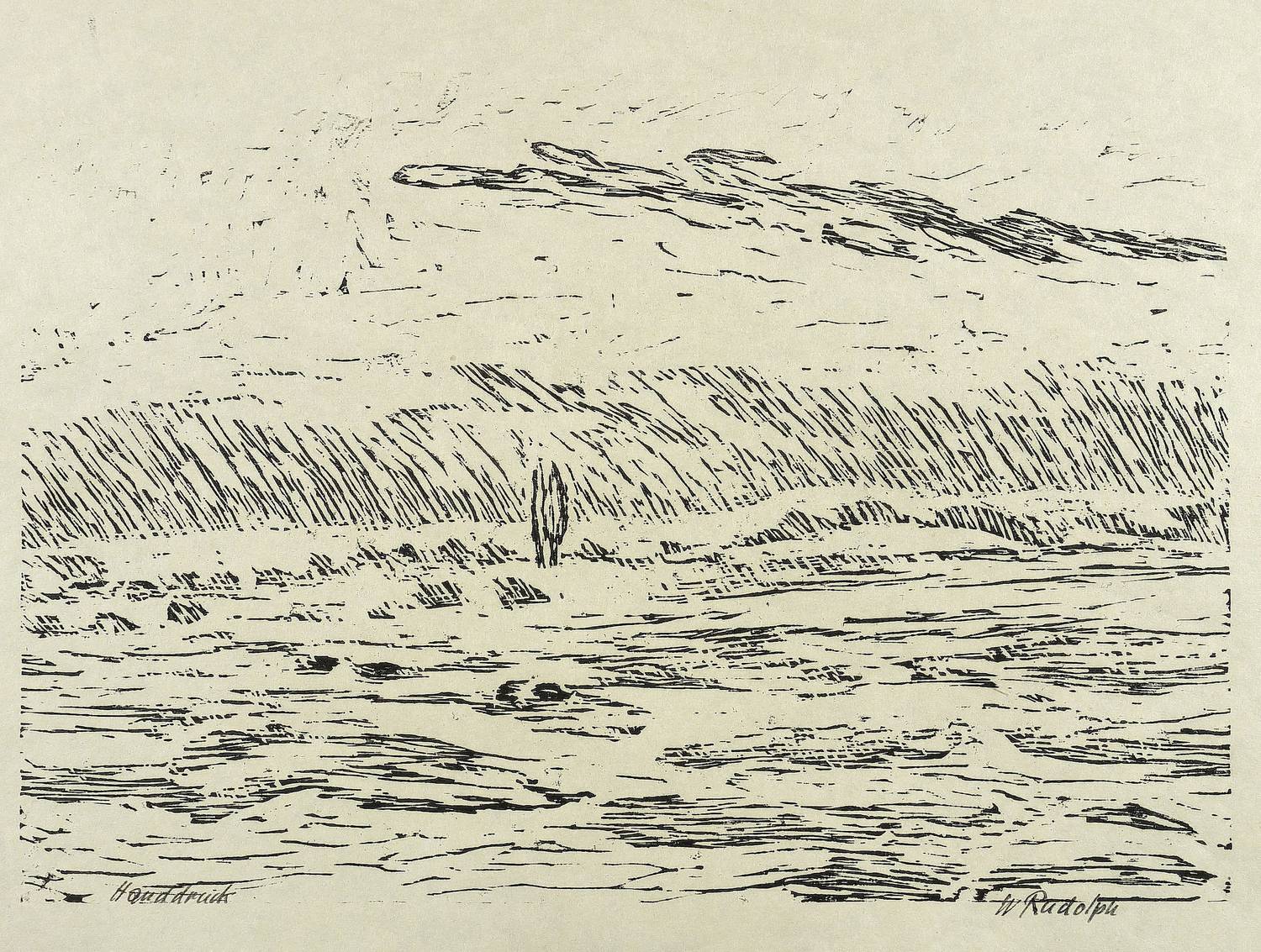 Rechts unten in Tusche und Feder signiert: ″W Rudolph″. Links bezeichnet: ″Handdruck″. – Eigenhändiger Abzug bzw. Abrieb des Künstlers. – Verso Spuren von Druckfarbe aus dem Druckprozess. Sonst tadelloses Exemplar.