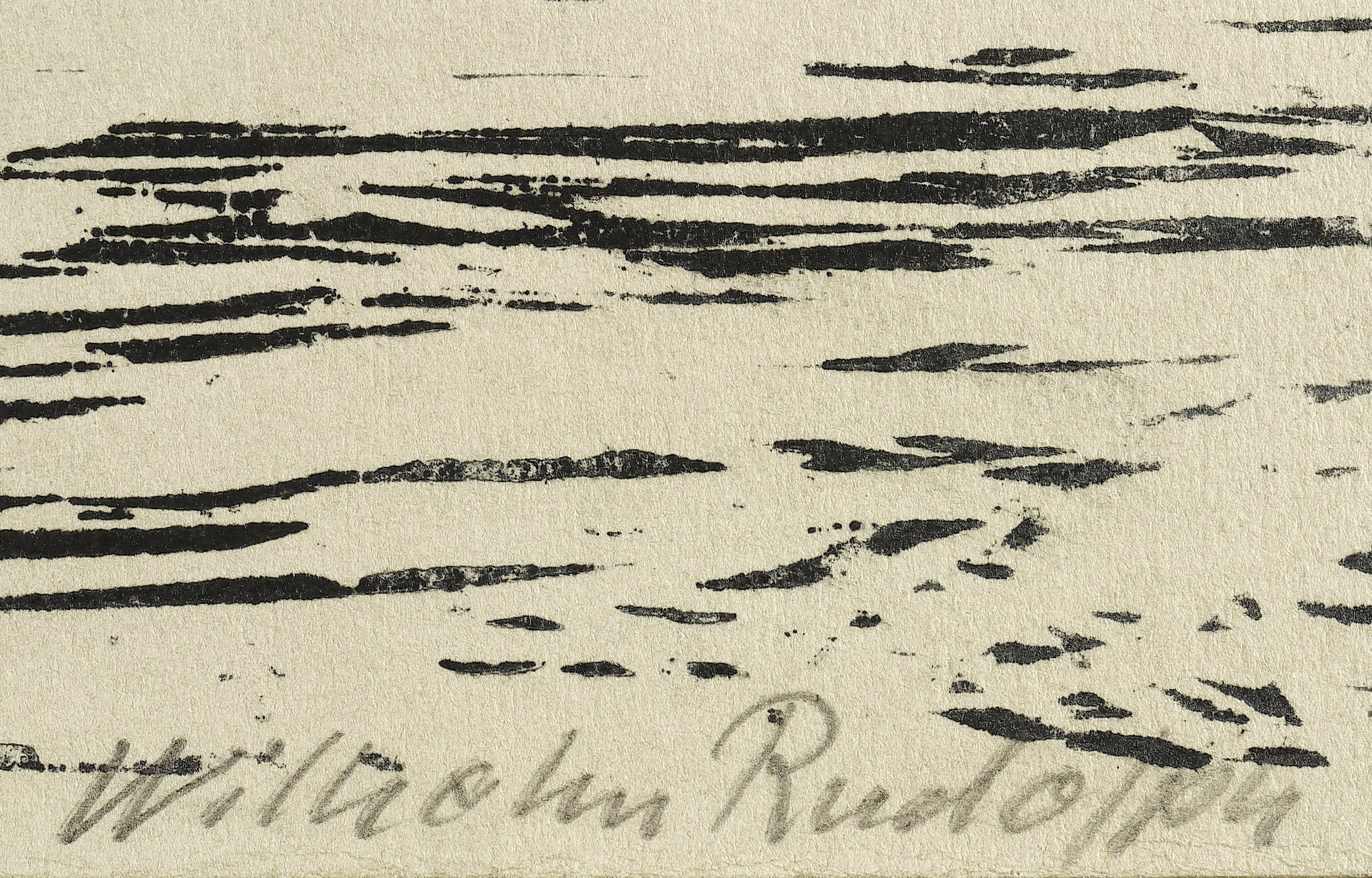 Wilhelm Rudolph (1889 Chemnitz - 1982 Dresden). Dresdner Maler und Grafiker. 1906-08 Lithografenlehre. 1908-14 Studium an der Akademie der Künste in Dresden bei Robert Sterl, Meisterschüler von Carl Bantzer. 1914-18 Soldat im Ersten Weltkrieg. Ab 1920 freischaffend in Dresden tätig. Mitglied der "Künstlervereinigung Dresden". 1932 Aufnahme der Lehrtätigkeit an der Dresdner Akademie der Künste, 1935 Professur. 1938 Entlassung und Ausstellungsverbot. 1945 Verlust des fast gesamten künstlerischen Werks durch die Bombenangriffe auf Dresden. 1946-49 erneute Lehrtätigkeit an der HfBK Dresden. 1961 Nationalpreis der DDR, Martin-Andersen-Nexö-Preis der Stadt Dresden, Kunstpreis des FDGB. 1979 Ehrenbürger der Stadt Dresden. 1980 Nationalpreis der DDR.